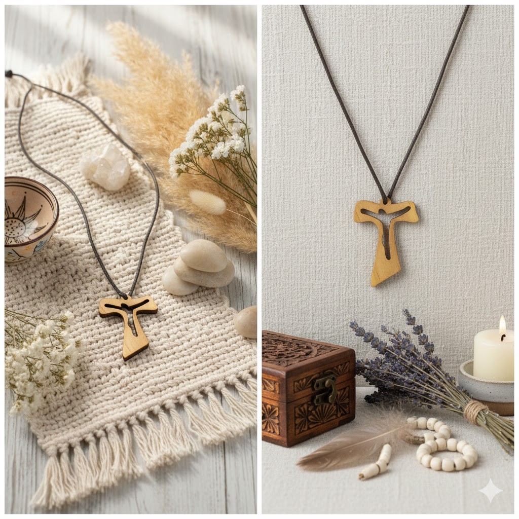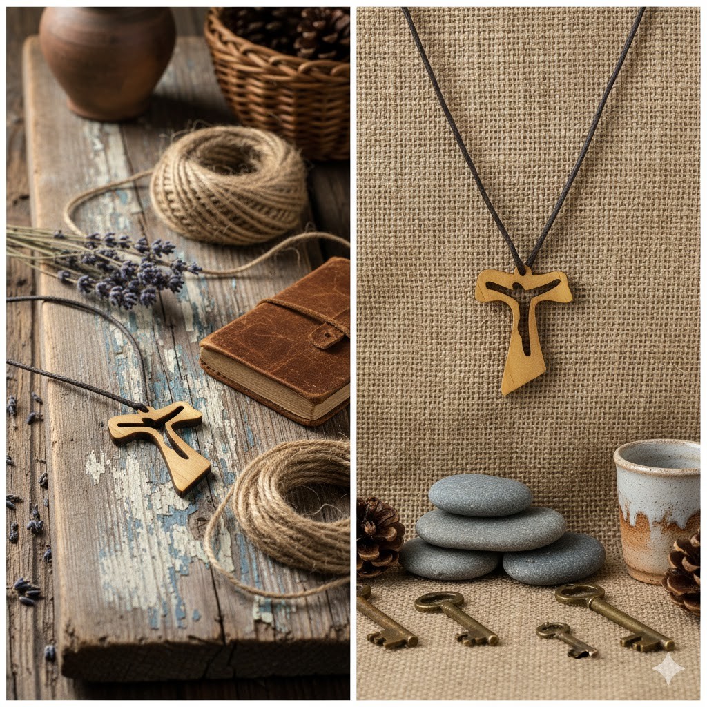 Drewniany krzyżyk TAU to symbol pokory, prostoty i całkowitego zawierzenia Bogu. Nierozerwalnie kojarzony z duchowością św. Franciszka z Asyżu, stanowi jedno z najpopularniejszych i najgłębiej symbolicznych sakramentaliów. Wykonany z naturalnego drewna, w zestawie z woskowanym sznurkiem, jest lekkim i wygodnym w noszeniu znakiem wiary na co dzień.