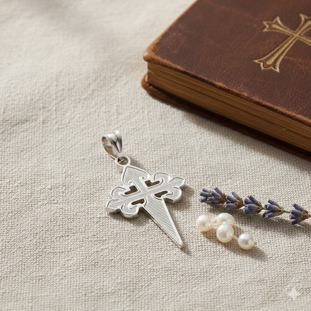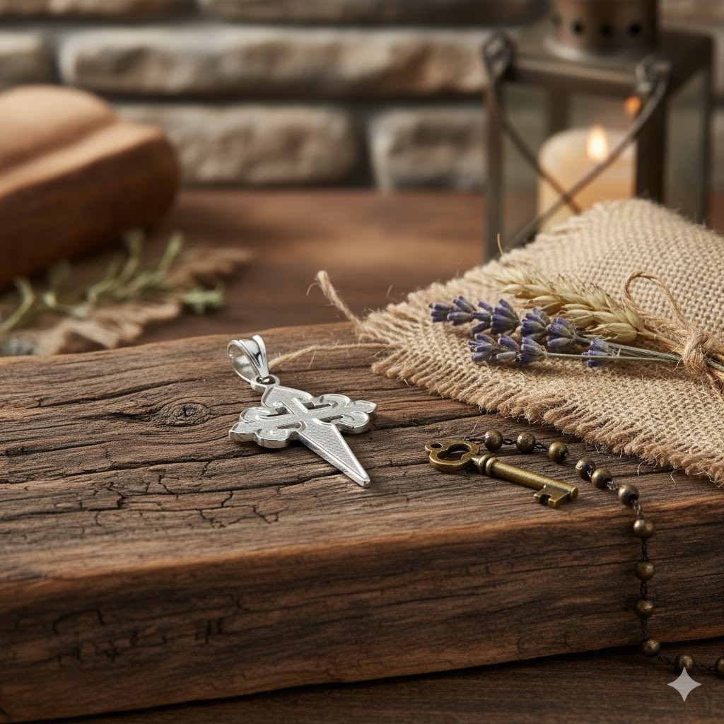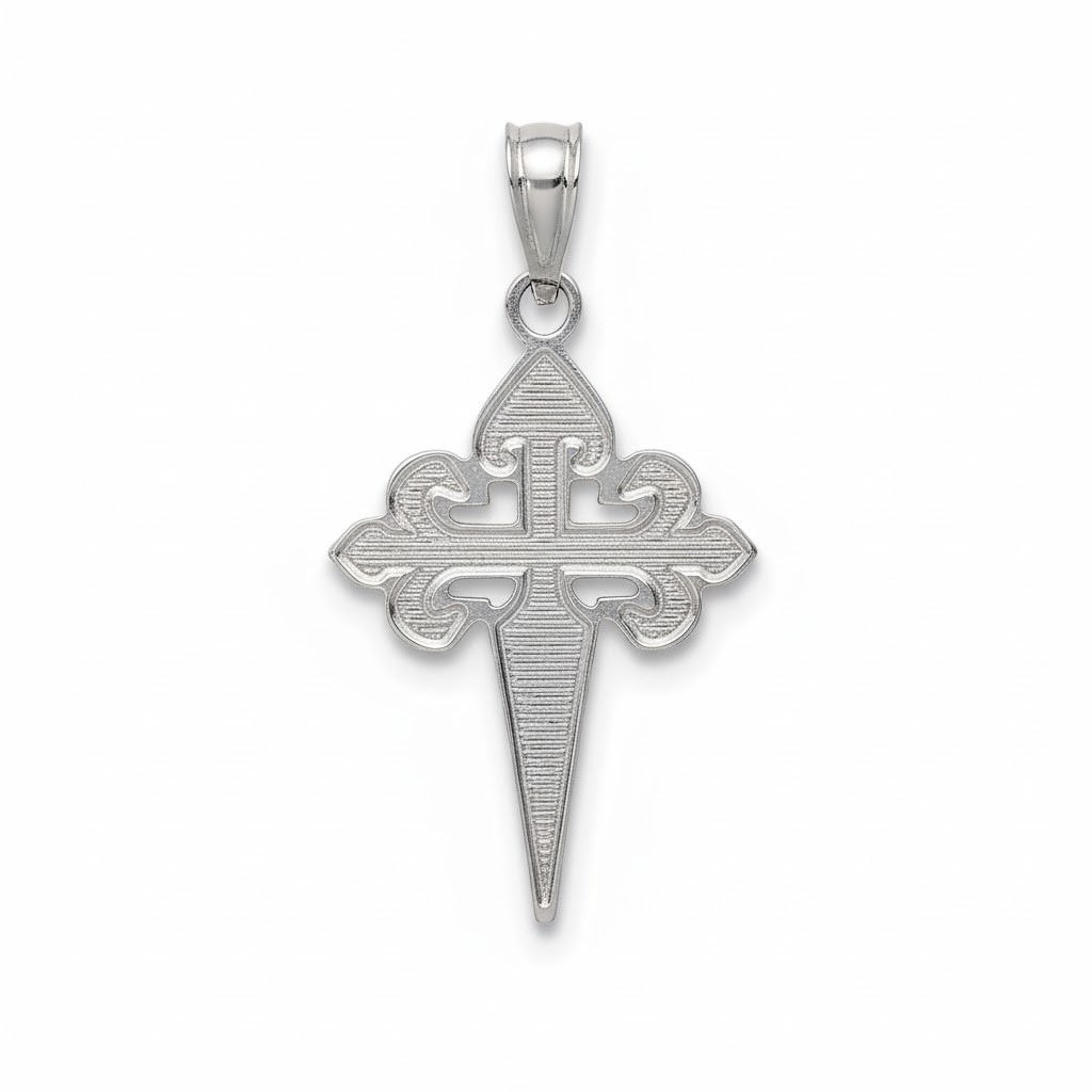 Krzyżyk to jeden z najważniejszych symboli chrześcijaństwa — przypomina ofiarę i miłość Chrystusa, a także jest znakiem ochrony i przynależności. Wersja ze wzorem Św. Jakuba (za którym przemawia duchowa droga, pielgrzymka i doświadczenie wiary) nadaje zawieszce dodatkowy wymiar duchowej siły i odniesienia. Srebro próby 925 podkreśla jakość i trwałość — może być noszony przy codziennej modlitwie, jako osobisty znak wiary, lub zawieszony jako pamiątka ważnego wydarzenia duchowego.