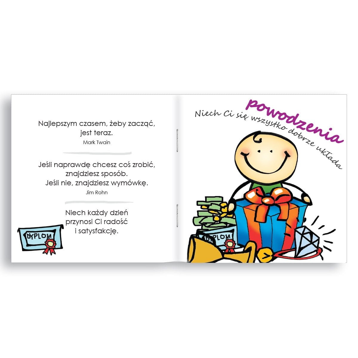 Chcesz przekazać bliskiej osobie kilka pokrzepiajacych słów? Wybierz książeczkę „Powodzenia”, która świetnie zastąpi tradycyjną kartkę i wyrazi znacznie więcej!