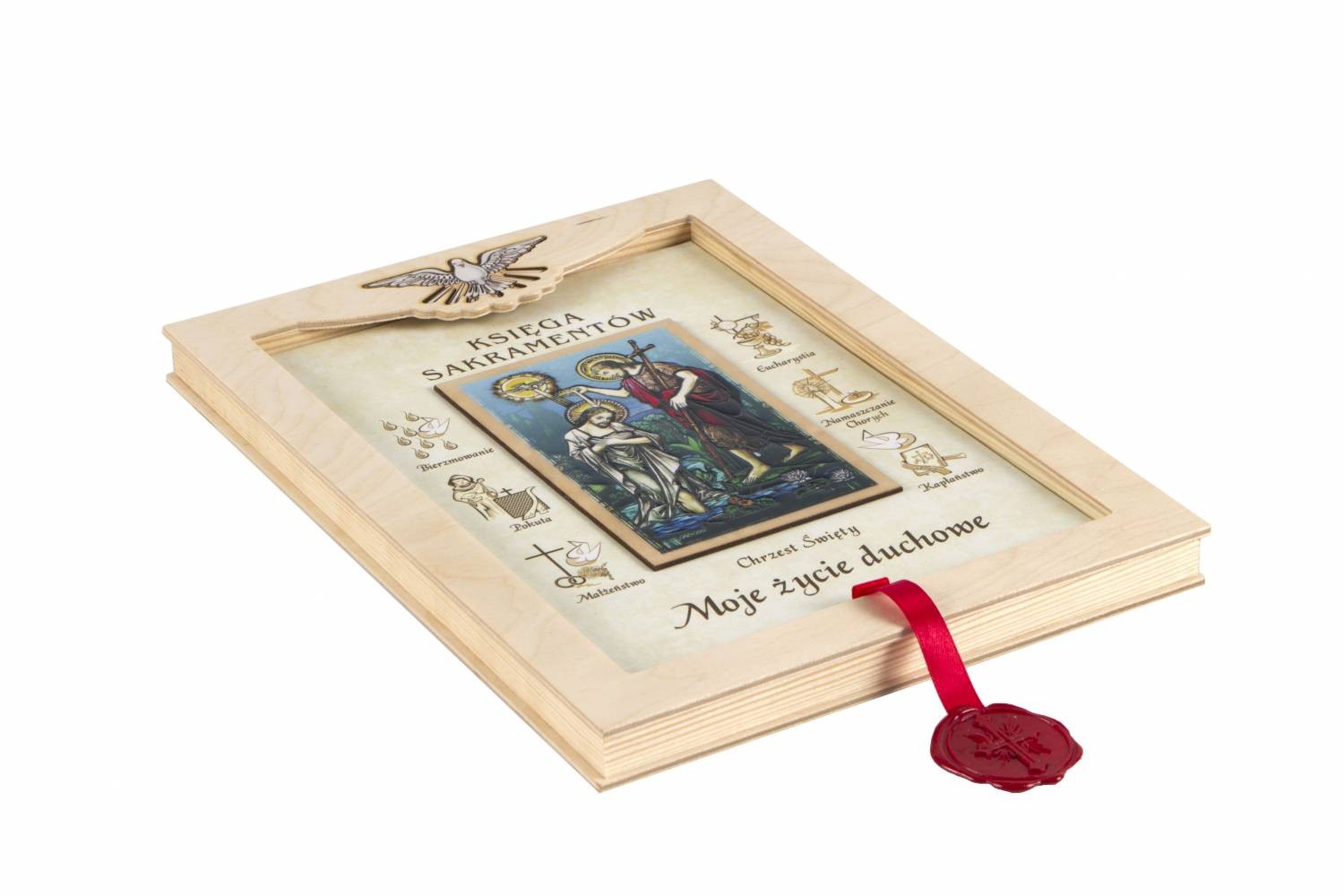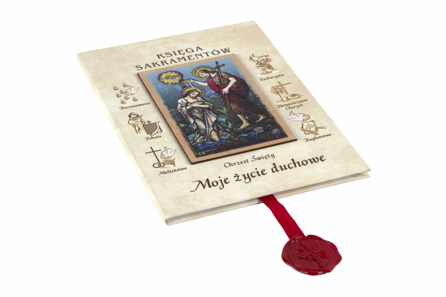 Księga Sakramentów to osobista pamiątka przyjętych sakramentów. Ta unikalna kronika ma towarzyszyć człowiekowi w jego duchowej drodze życia. Zawiera najważniejsze szczegóły takie jak daty i miejsca przyjęcia kolejnych sakramentów, dane osób uczestniczących w obrzędach oraz miejsce na fotografie i pamiątkowe wpisy.