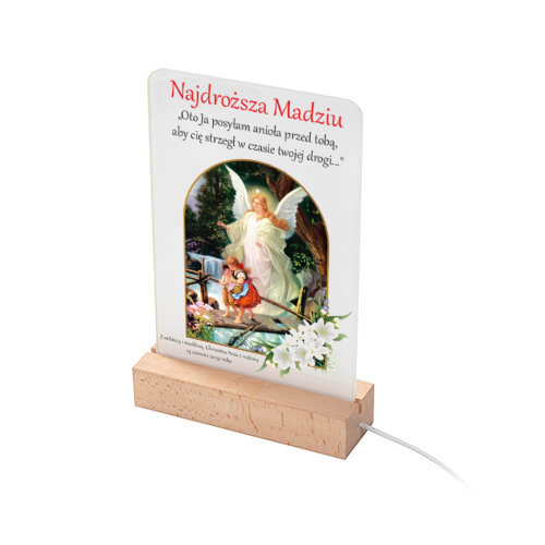 Lampka nocna LED z nadrukiem Anioł Stróż - prezent pamiątka Chrzest Święty