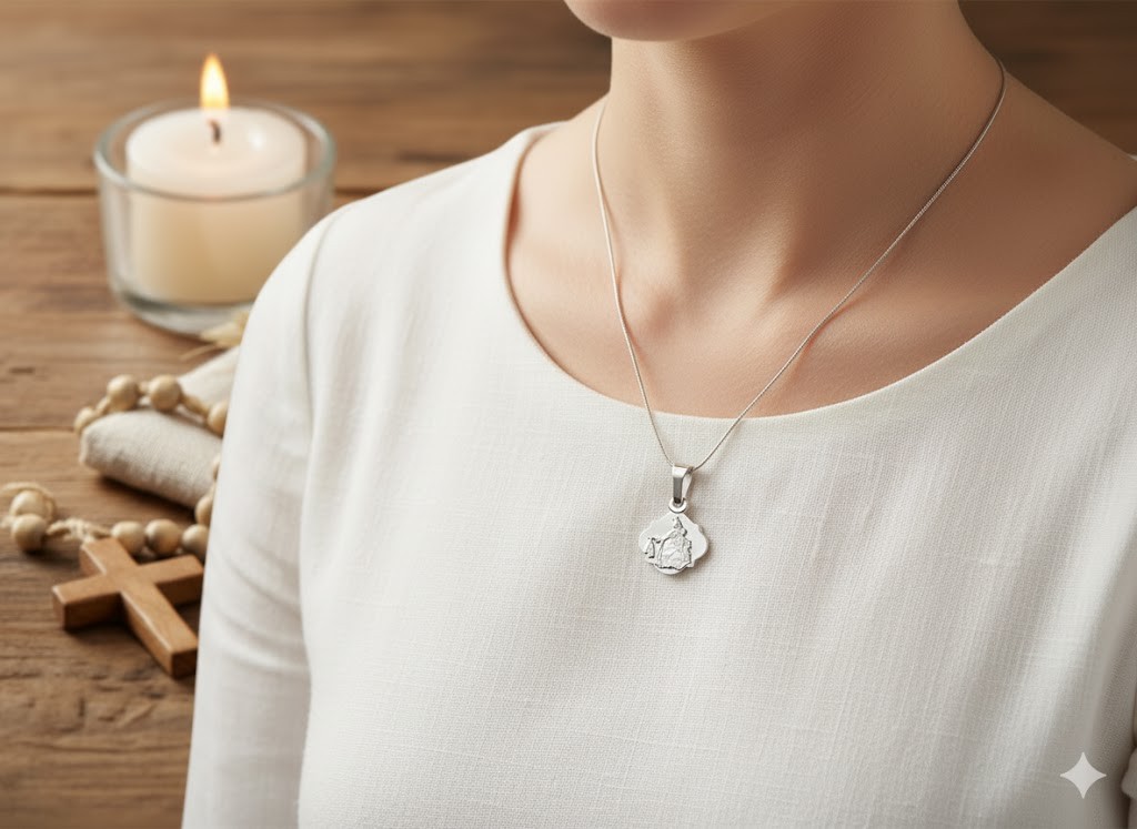 Medalik „Szkaplerz” nawiązuje do maryjnej tradycji i jest znakiem duchowej opieki oraz przynależności. Wykonany ze srebra znajduje miejsce blisko serca — zarówno dosłownie, jak i w znaczeniu duchowym. Noszony albo przekazywany jako prezent staje się wyrazem wiary, miłości i pamięci.