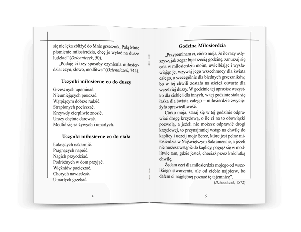 Modlitewnik przeznaczony dla czcicieli Miłosierdzia Bożego. Zawiera modlitwy do Miłosierdzia Bożego, a także fragmenty z „Dzienniczka” św. Faustyny.