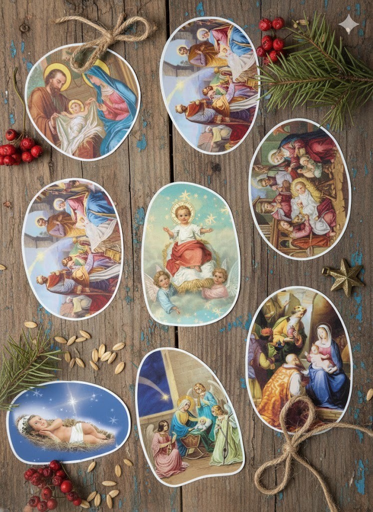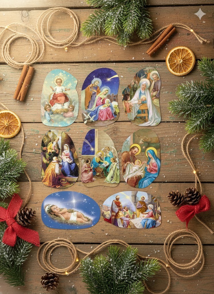Ten zestaw doskonale sprawdzi się jako dodatek do kartek świątecznych, laurek, prezentów, stroików, domowych dekoracji, a nawet jako ozdoba na zeszyty, pudełka czy okna. To mały akcent, który pozwala w prosty sposób podkreślić duchowy wymiar świąt Bożego Narodzenia i wprowadzić atmosferę radości z przyjścia Zbawiciela.