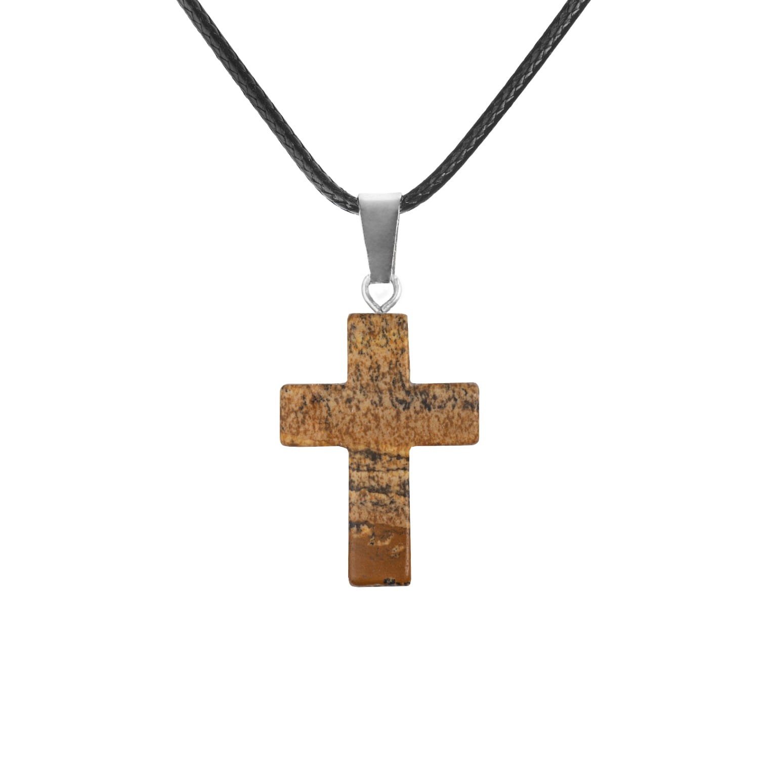 Naszyjnik z krzyżykiem z jaspisu – kamień naturalny 2,5 cm