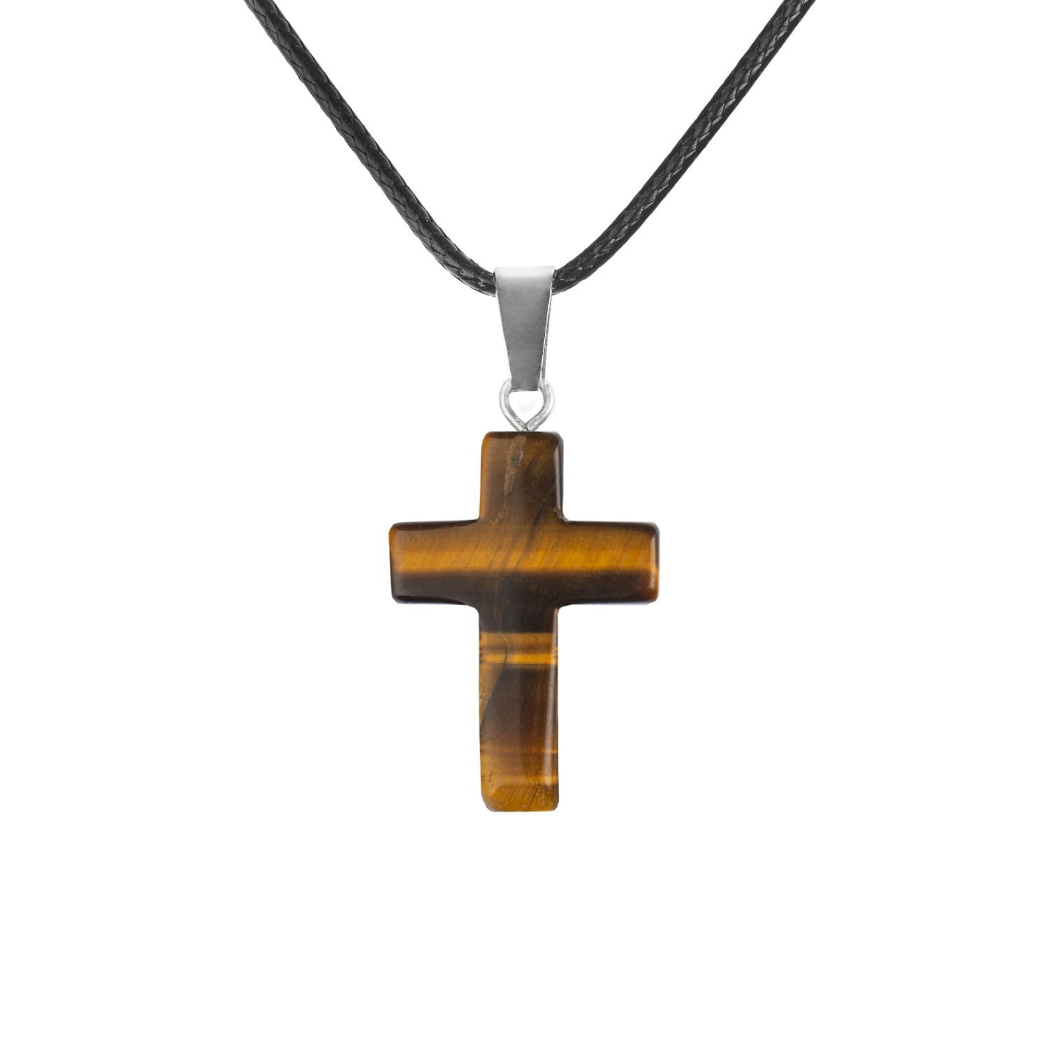 Naszyjnik - krzyżyk - kamień naturalny TYGRYSIE OKO 2,5cm