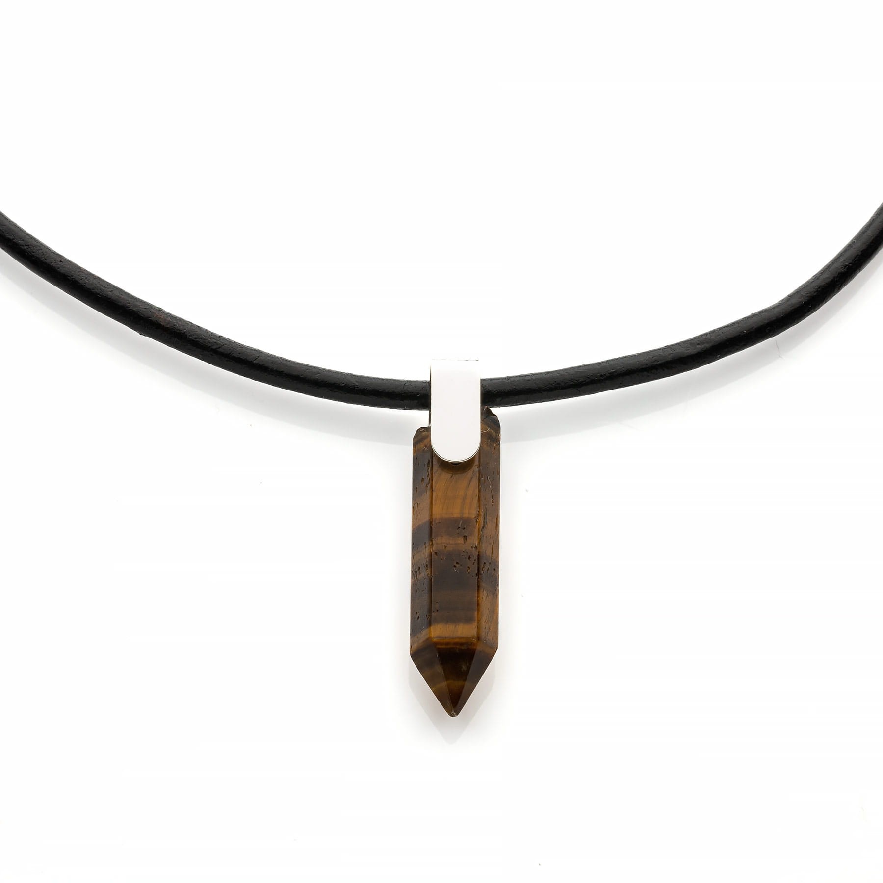 Naszyjnik męski na skórzanym rzemieniu z grotem Tygrysie oko