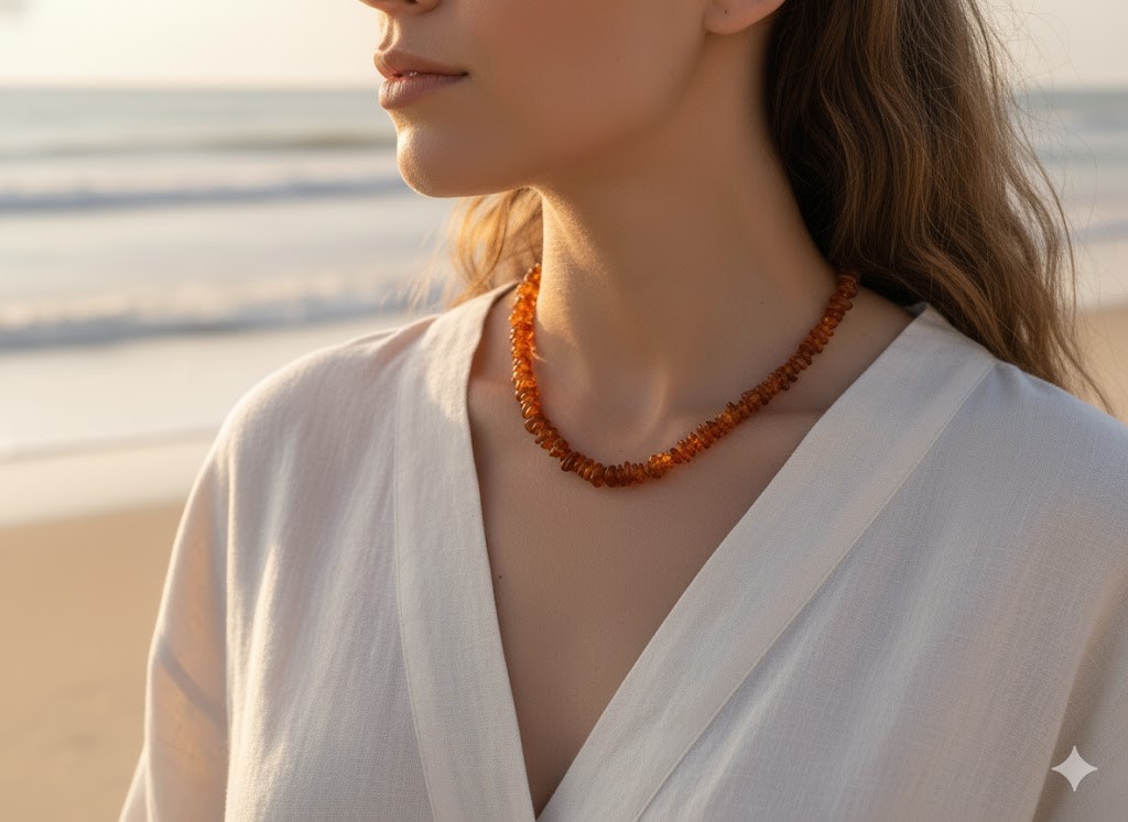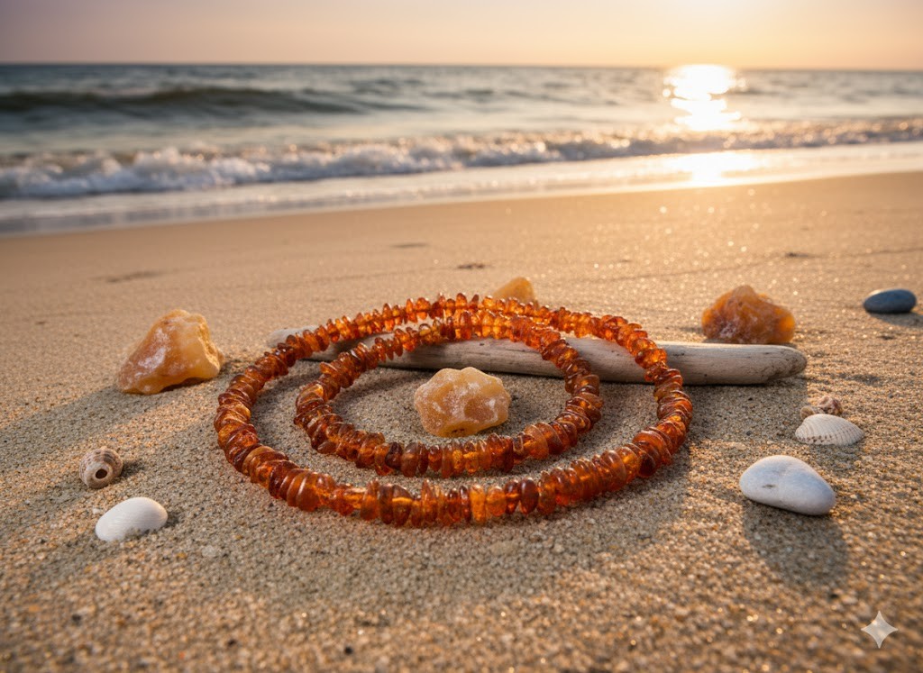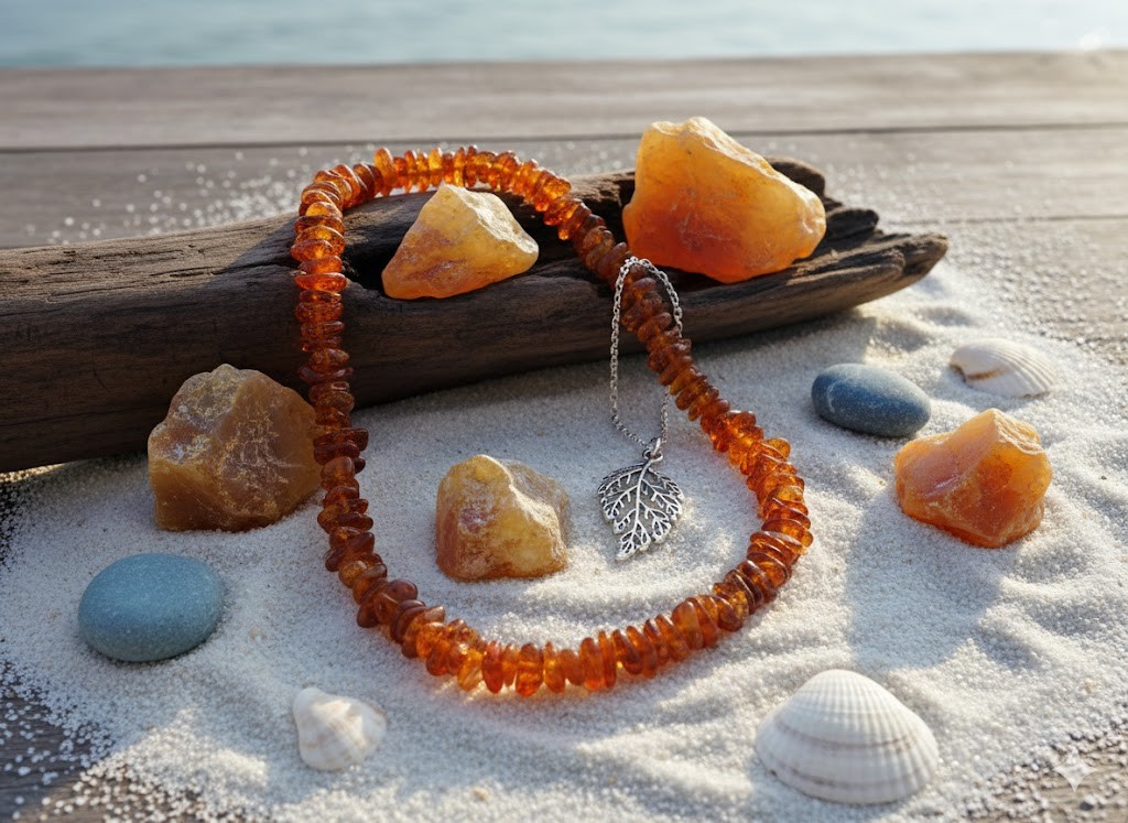 Bursztyn od wieków uważany jest za kamień o właściwościach ochronnych i leczniczych – szczególnie doceniany za działanie uspokajające i wspierające układ odpornościowy. Naturalny, nieprasowany bursztyn zawiera więcej kwasu bursztynowego, który według wielu przekonań może korzystnie wpływać na organizm, zwłaszcza w postaci biżuterii noszonej przy skórze.