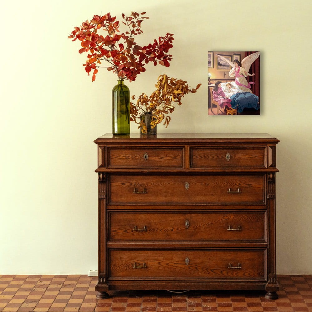 Obraz na desce lipowej - Anioł Stróż 15x20