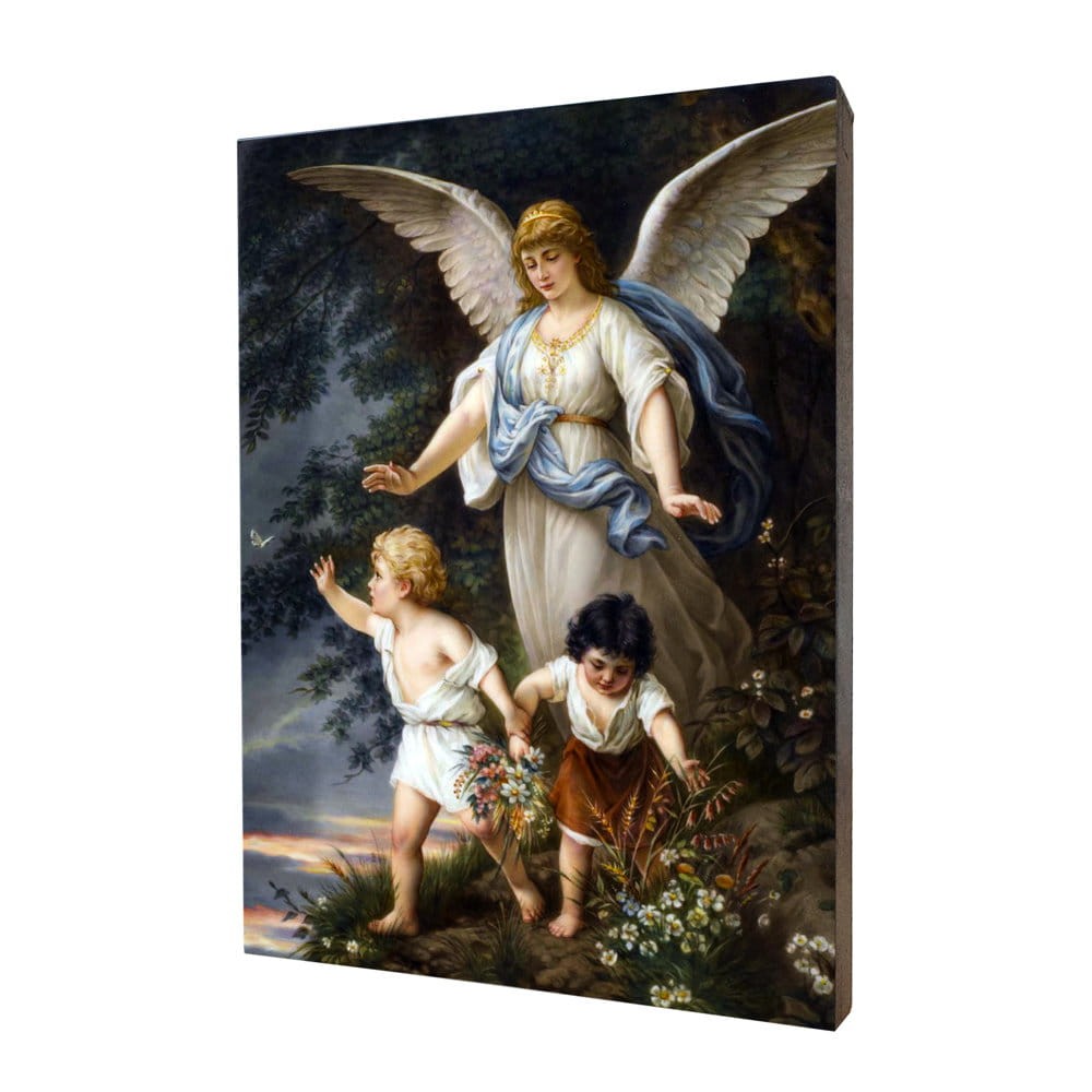 Obraz na desce lipowej, Anioł Stróż - 15x20