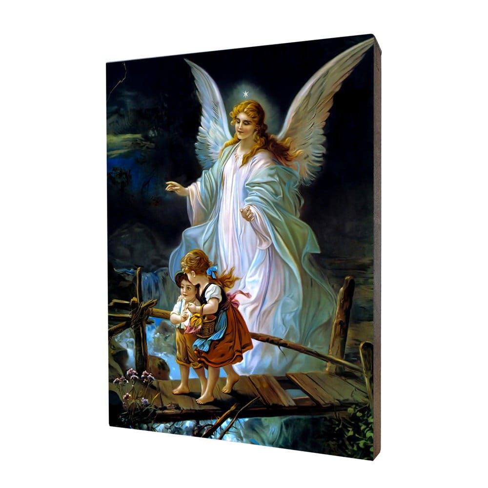 Obraz na desce lipowej, Anioł Stróż - 15x20
