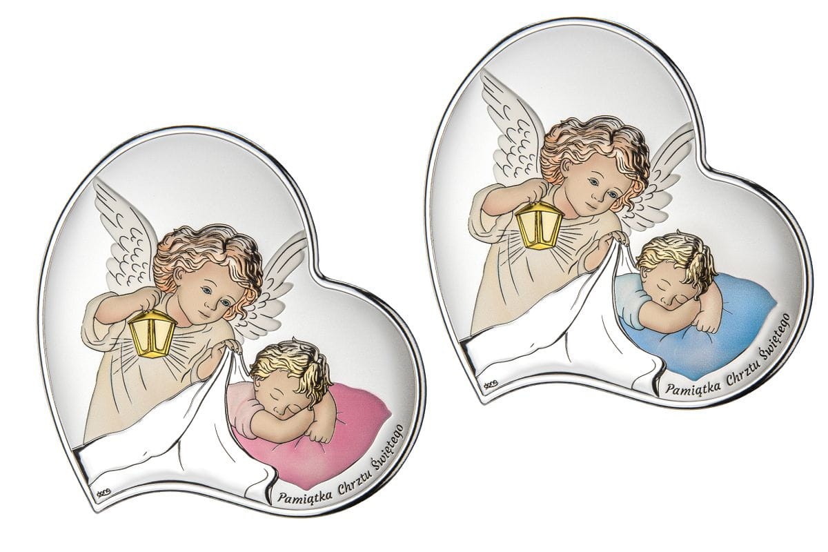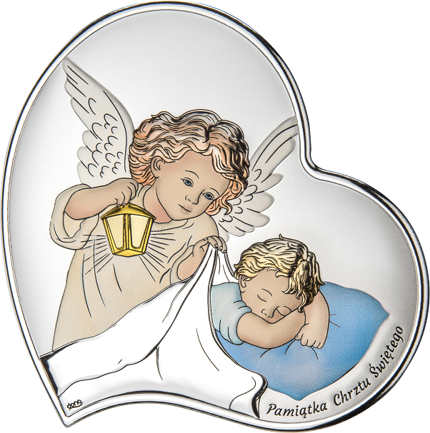 Obrazek srebrny - ANIOŁEK Z LATARENKĄ NAD DZIECIĄTKIEM – 11x11 cm