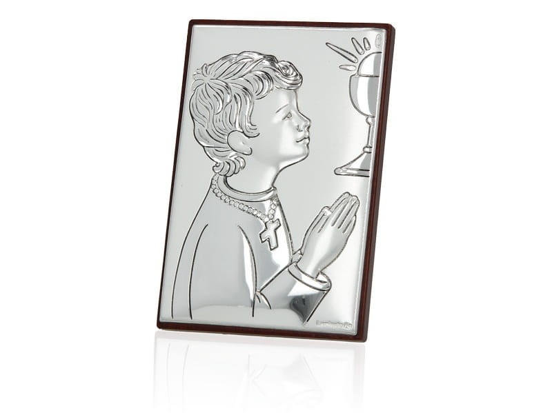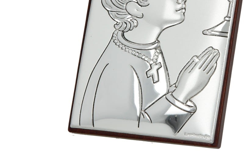 Obrazek srebrny - Komunia Święta - chłopczyk 9x6