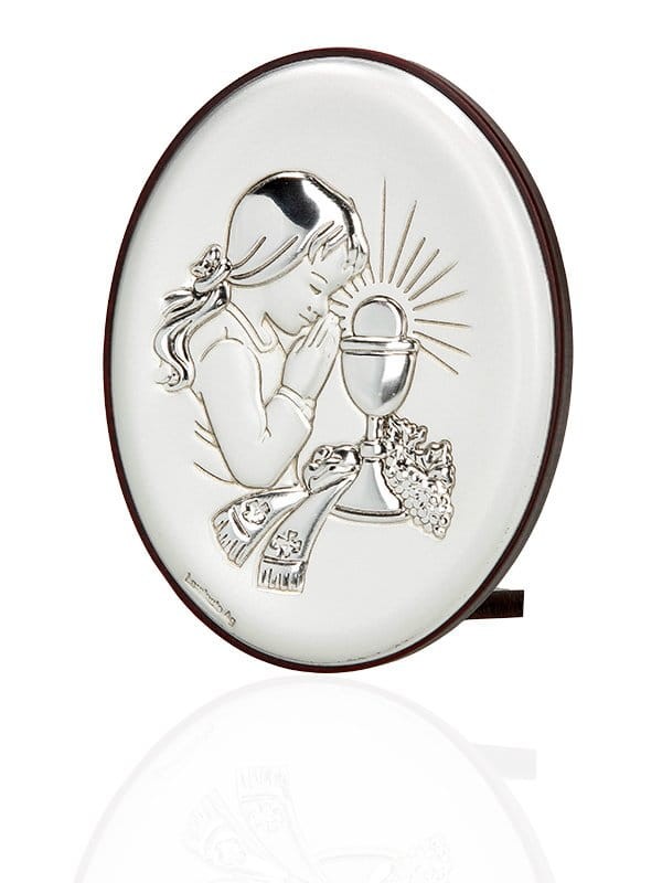 Obrazek srebrny - Komunia Święta - dziewczynka 9x7