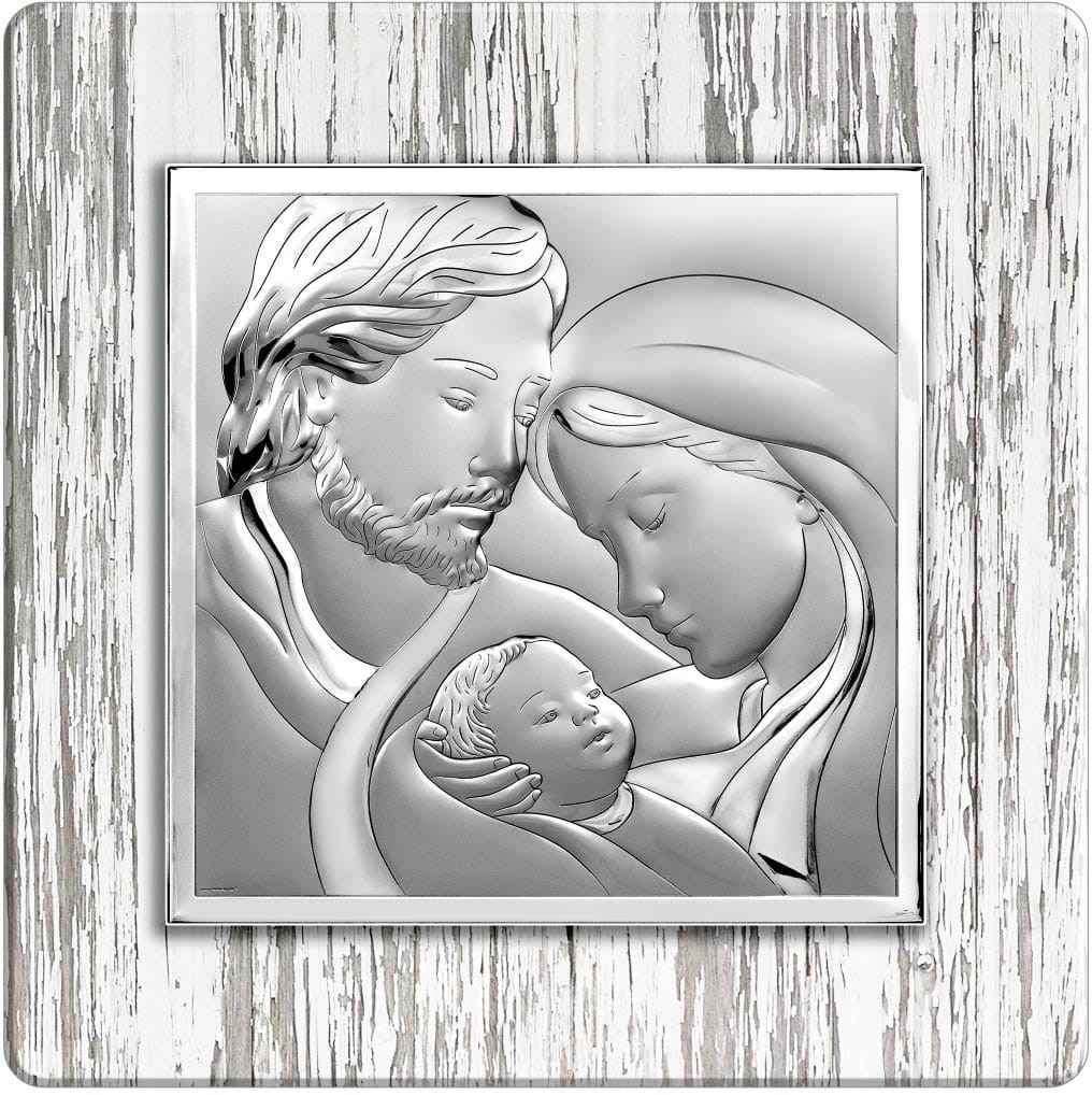 Obrazek srebrny z wizerunkiem Świętej Rodziny na drzewie Shabby chic