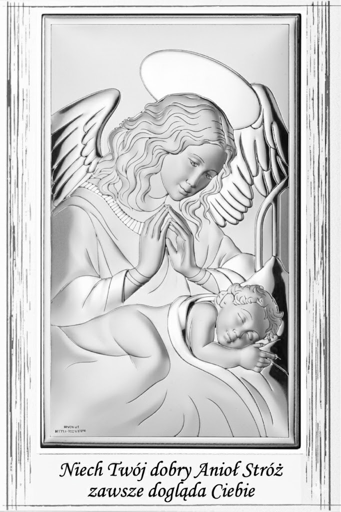 Tekst na obrazku: "Niech Twój dobry Anioł Stróż zawsze dogląd Ciebie"