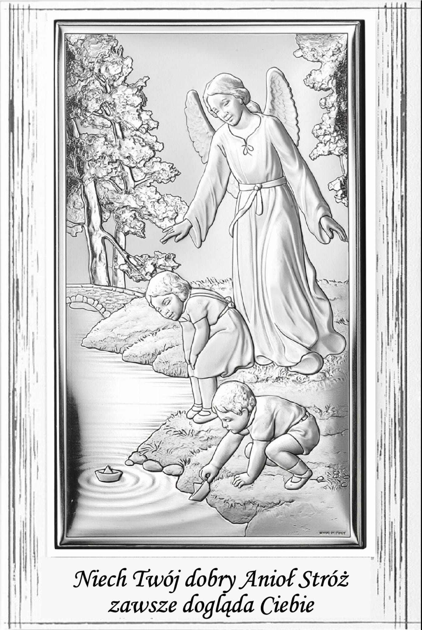 Obrazek srebrny - Twój dobry Anioł Stróż - 9x13,5 cm
