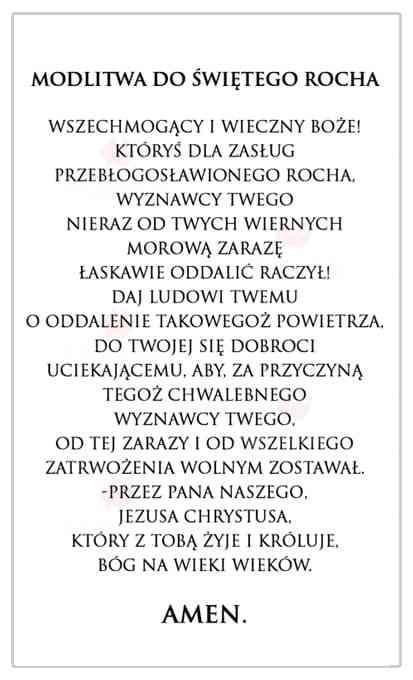 Obrazki Święte z modlitwą do Świętego Rocha