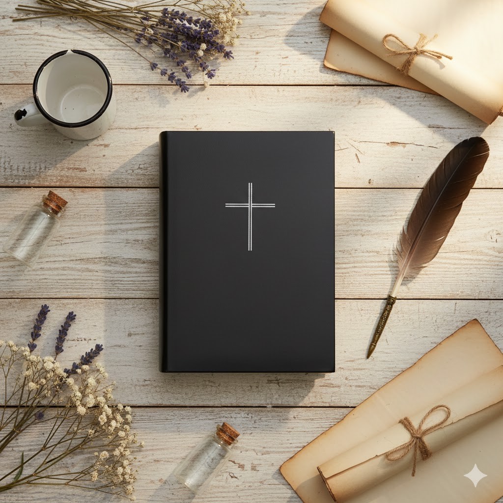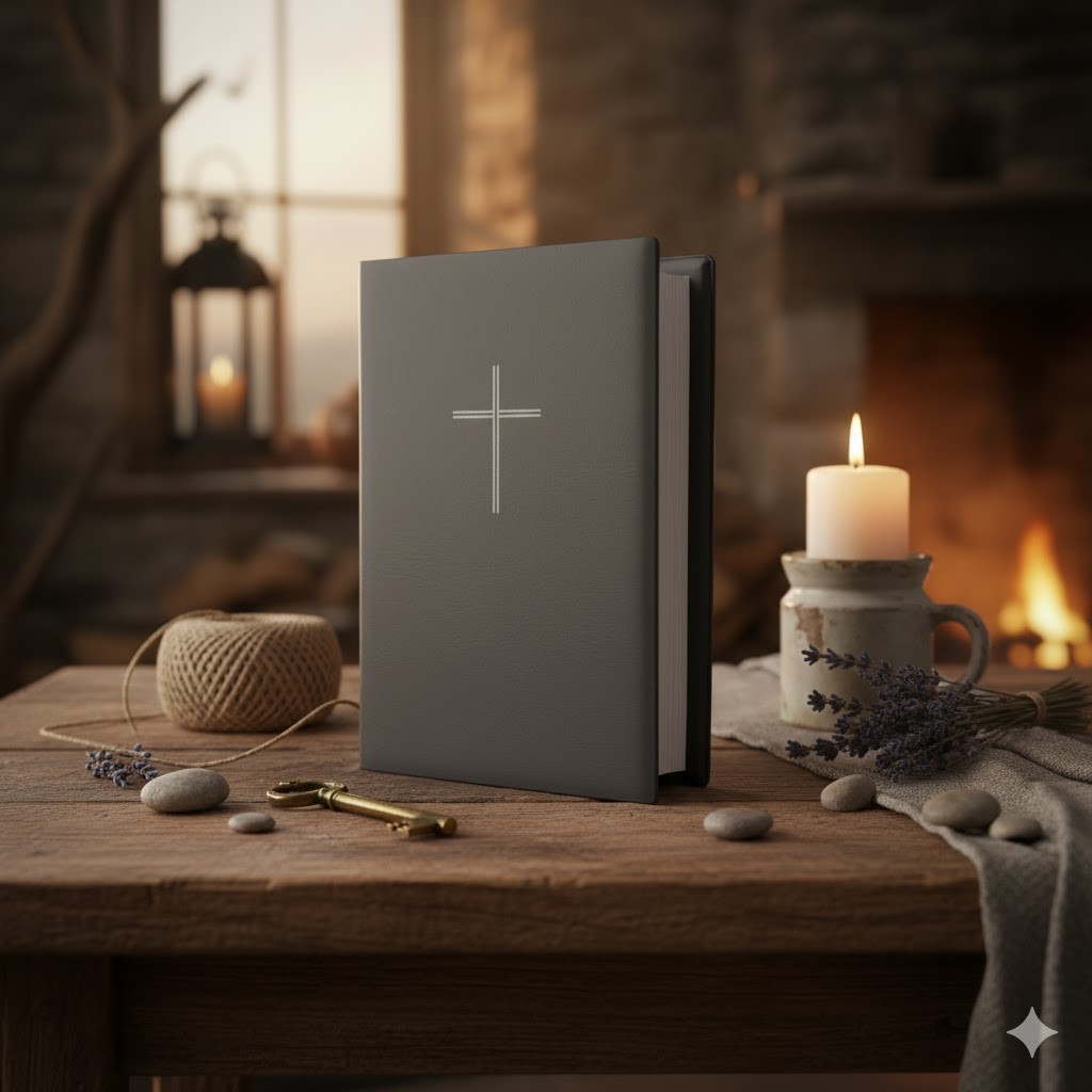 Srebrny krzyż na okładce przypomina o obecności Chrystusa i zaprasza do modlitwy. Jego prostota i delikatność podkreślają powagę modlitewnej księgi i prowadzą ku skupieniu.