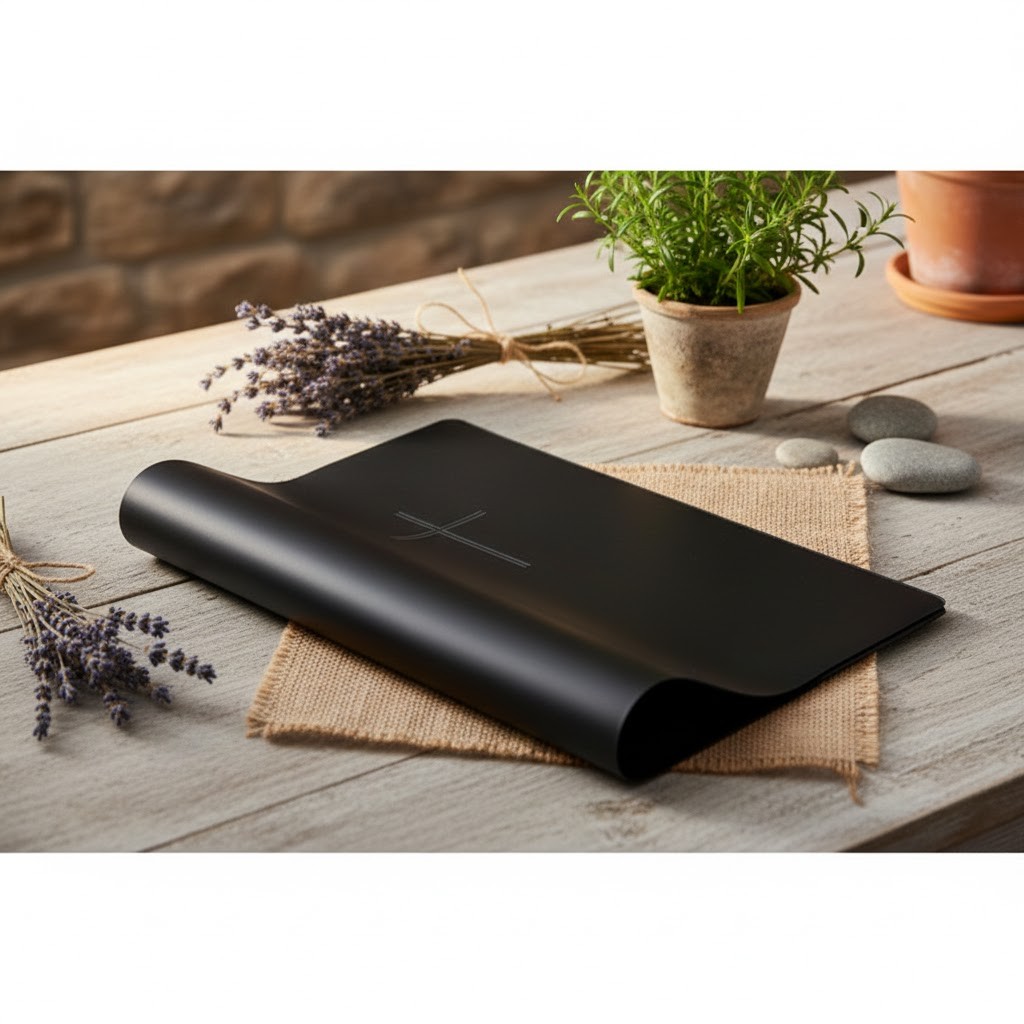 Wykonana z grubej, elastycznej folii w głębokiej czerni, jest trwała, lekka i wygodna w codziennym użytkowaniu. Na froncie znajduje się subtelne, srebrne zdobienie w formie krzyża — proste, a zarazem pełne duchowej treści.