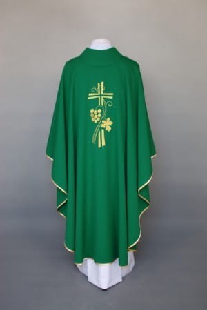 Ornat zdobiony haftem, wykonany z lekkiej, przewiewnej tkaniny.