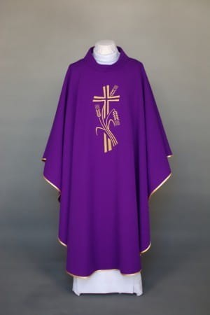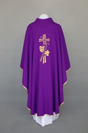 Ornat zdobiony haftem, wykonany z lekkiej, przewiewnej tkaniny.