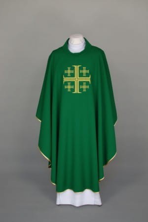 Ornat zdobiony haftem, wykonany z lekkiej, przewiewnej tkaniny.