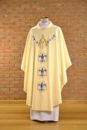 Ornat Maryjny zdobiony nowoczesnym haftem.