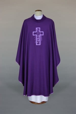 Ornat haftowany, wykonany z lekkiej, lnianej tkaniny.