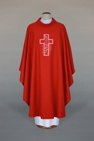 Ornat haftowany, wykonany z lekkiej, lnianej tkaniny.