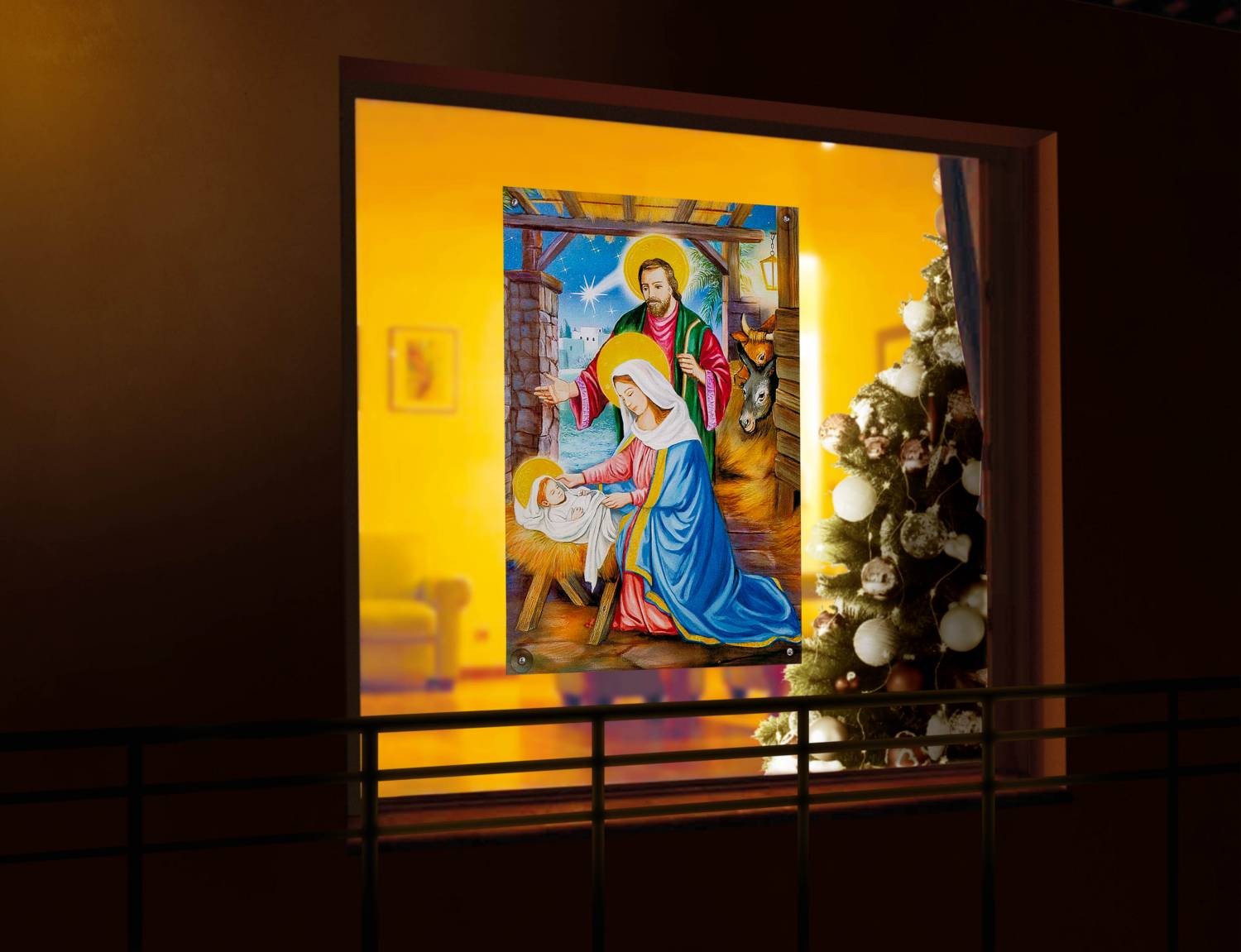 Ozdoba do okna - Boże Narodzenie - Szopka w gwieździe 30 x 60 cm