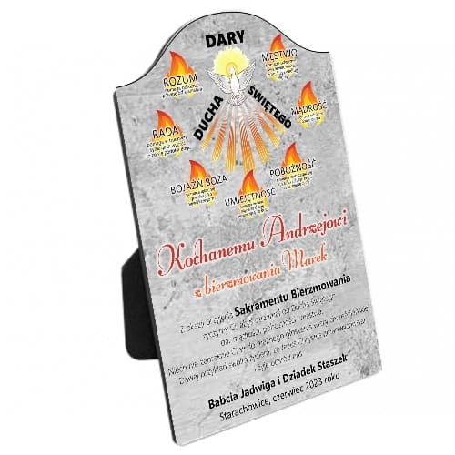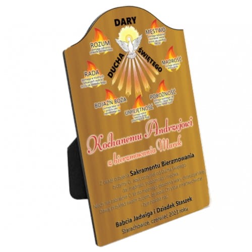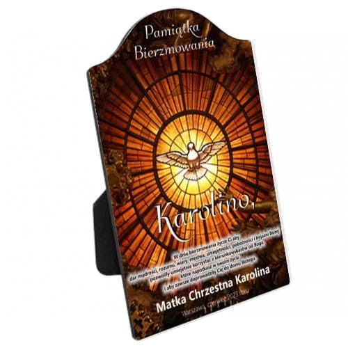 Personalizowany projekt pamiątkowy wykonany metodą sublimacyjną, będzie idealnym prezentem z okazji przyjęcia sakramentu Bierzmowania.