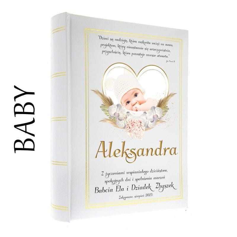 Pamiątkowy album na zdjęcia dziecka - życzenia dedykacja UV 36/13x18