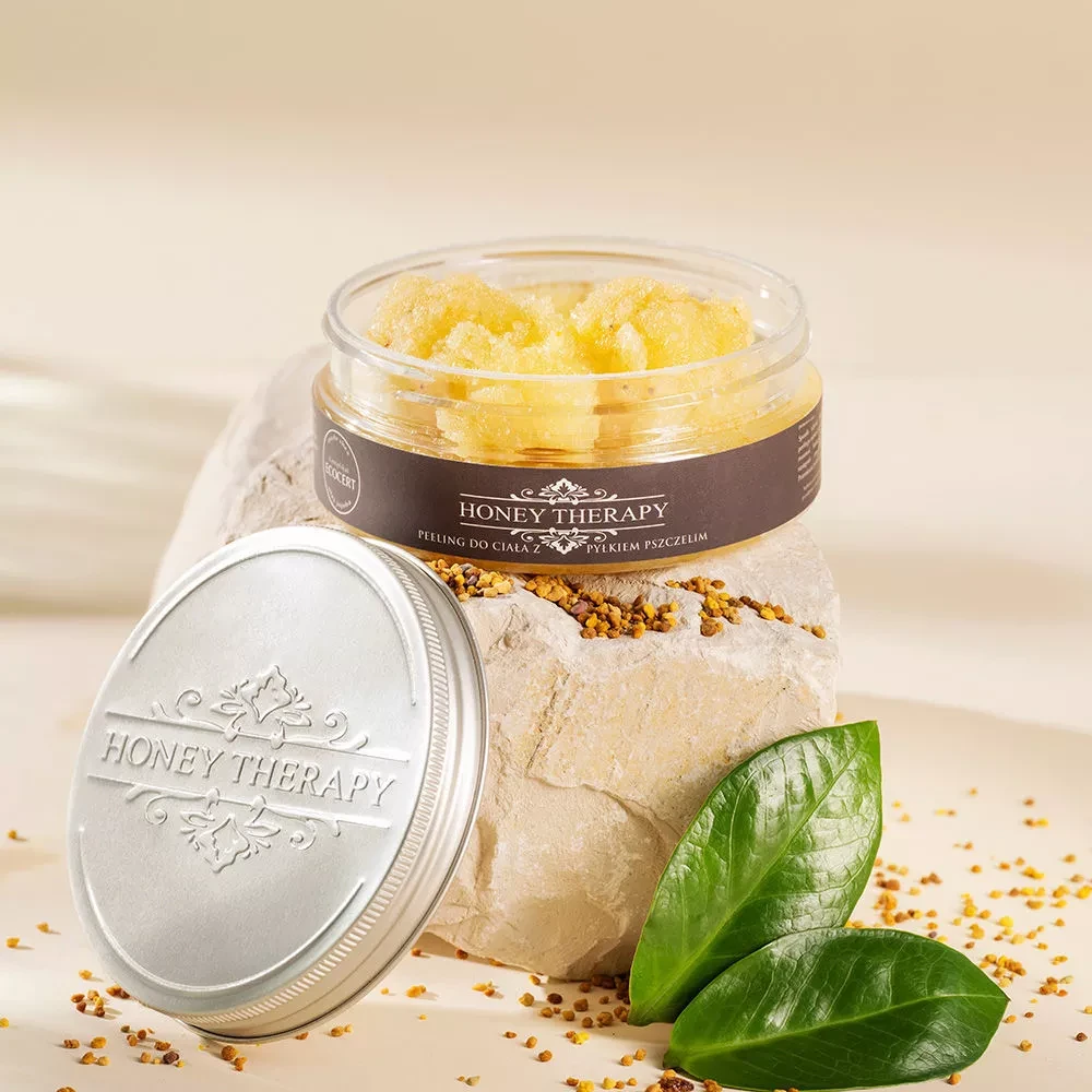 Odświeżający peeling solny z dodatkiem drobinek pyłku pszczelego. Doskonale złuszcza zewnętrzne warstwy naskórka, dzięki zawartości dwóch substancji ścierających soli jodowo-bromowej oraz pyłku pszczelego. Olej ze słodkich migdałów oraz olej jojoba doskonale nawilżają, zmiękczają i wzmacniają elastyczność skóry. Zawarty w peelingu pyłek pszczeli dogłębnie odżywia oraz zmiękcza skórę. Skóra pozostaje gładka i idealnie nawilżona, a delikatna warstwa aromatycznego olejku wydłuża efekt nawilżenia skory i ochrania ją przed niekorzystnym działaniem czynników zewnętrznych.
