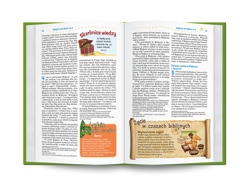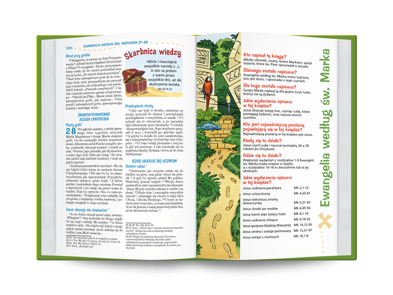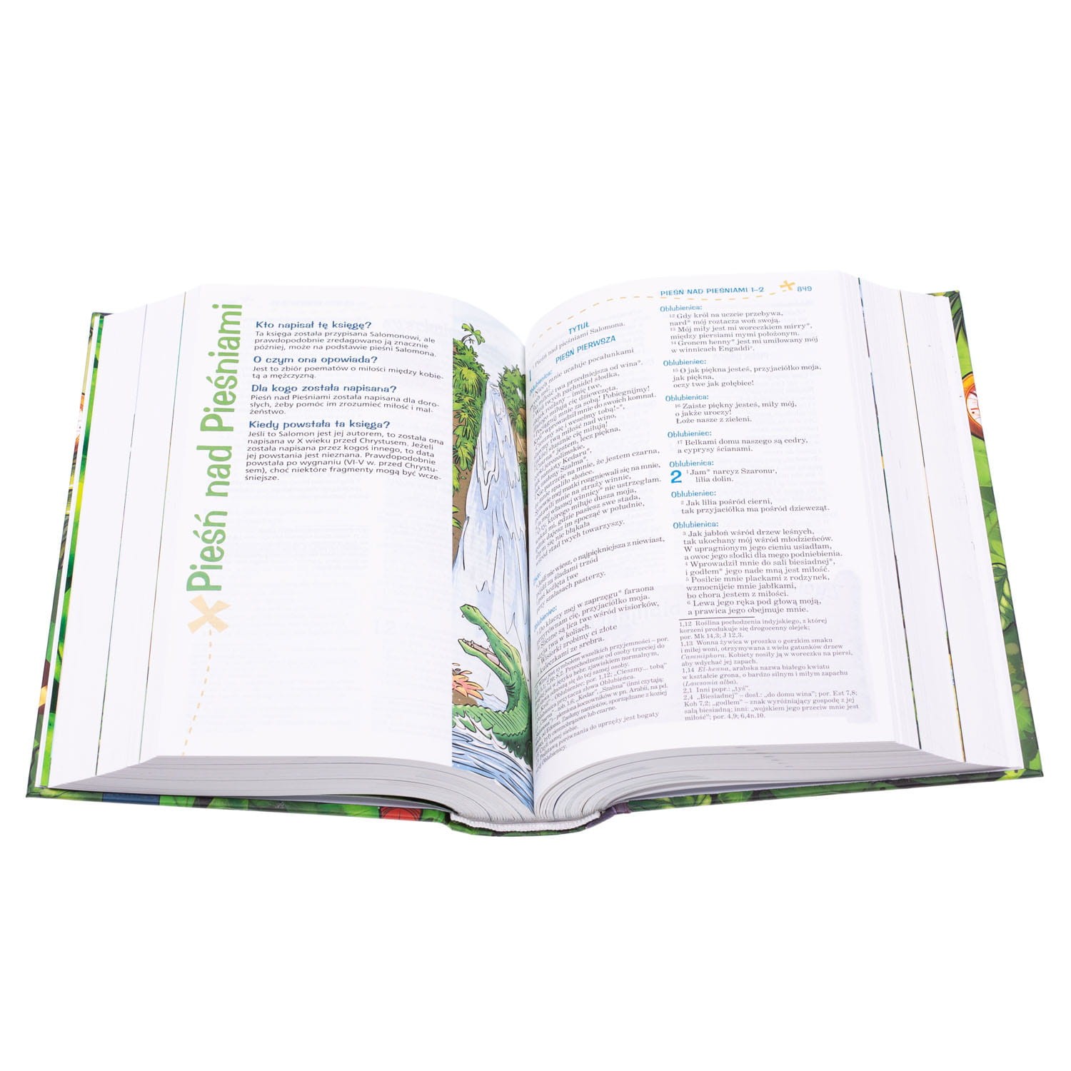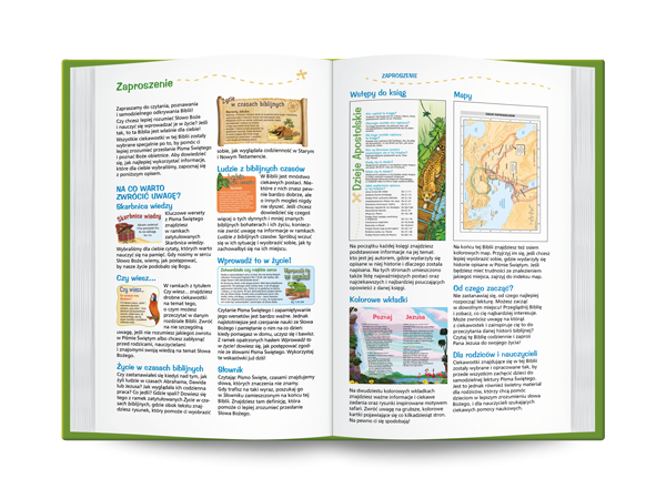 Grafiki, komentarze, objaśnienia, ciekawostki, didaskalia, przygodowa stylizacja, kolorowe mapy i wiele innych elementów przygotowano po to, by młody czytelnik ze zrozumieniem i w pełni świadomie korzystał z dobrodziejstw Słowa Bożego.