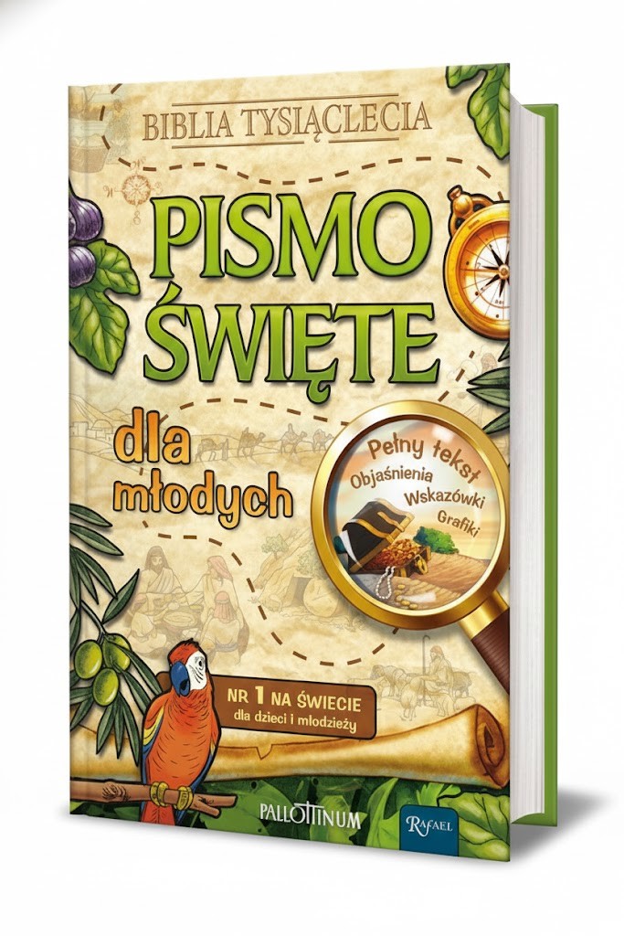 „Pismo Święte dla młodych” to wyjątkowe wydanie, w którym po raz pierwszy w Polsce pełny tekst Biblii w cenionym pallotyńskim tłumaczeniu połączono z najpopularniejszą na świecie edycją znaną jako Biblia z papugą. To propozycja stworzona specjalnie z myślą o dzieciach, nastolatkach i młodych dorosłych, którzy chcą poznawać Słowo Boże w sposób zrozumiały, ciekawy i inspirujący.
