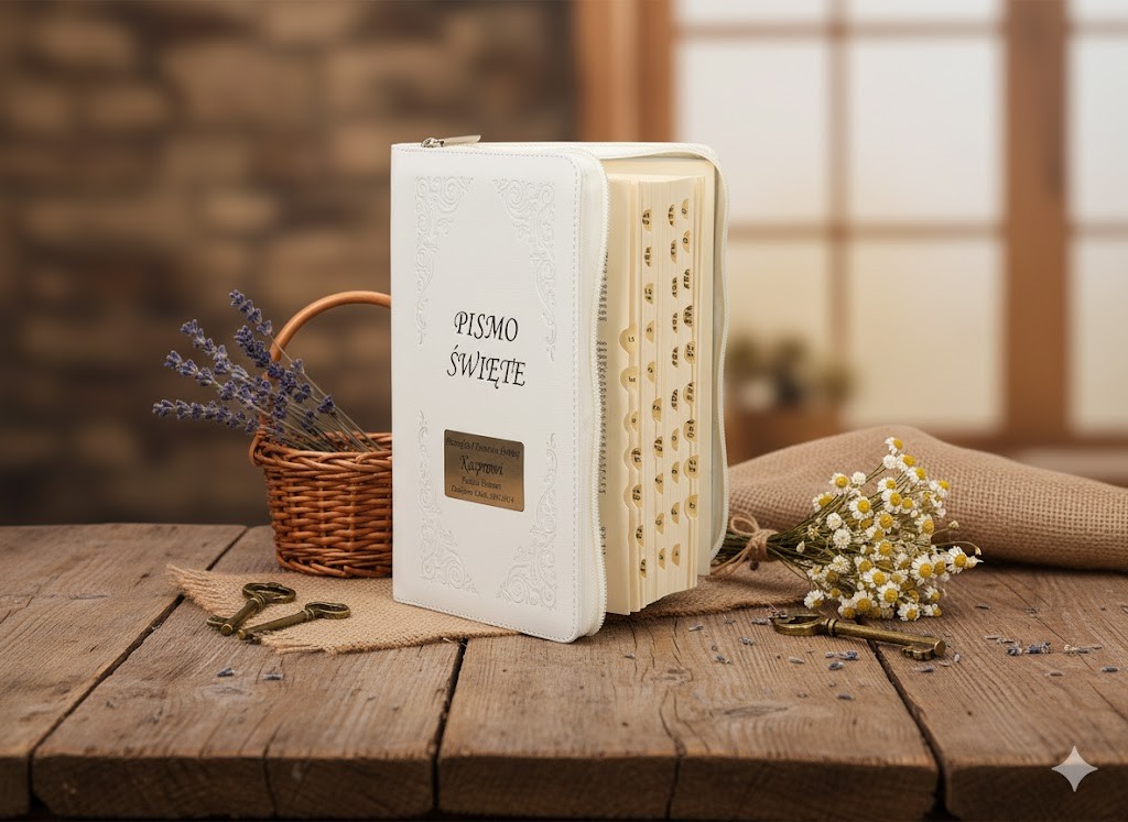Dzięki spersonalizowanemu grawerowi staje się ono trwałą pamiątką duchowej drogi i osobistego spotkania ze Słowem Bożym.