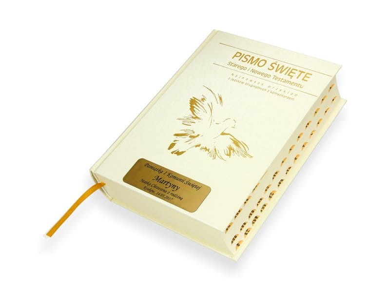 Pudełko chroni Biblię, czyniąc z niej piękną i trwałą pamiątkę