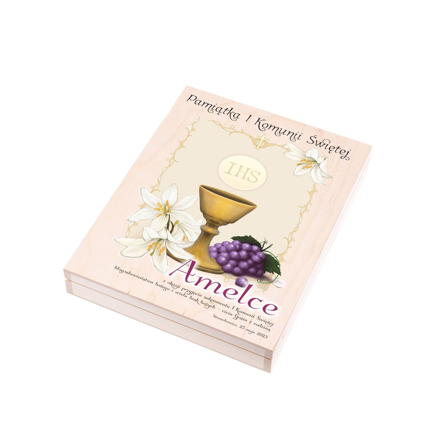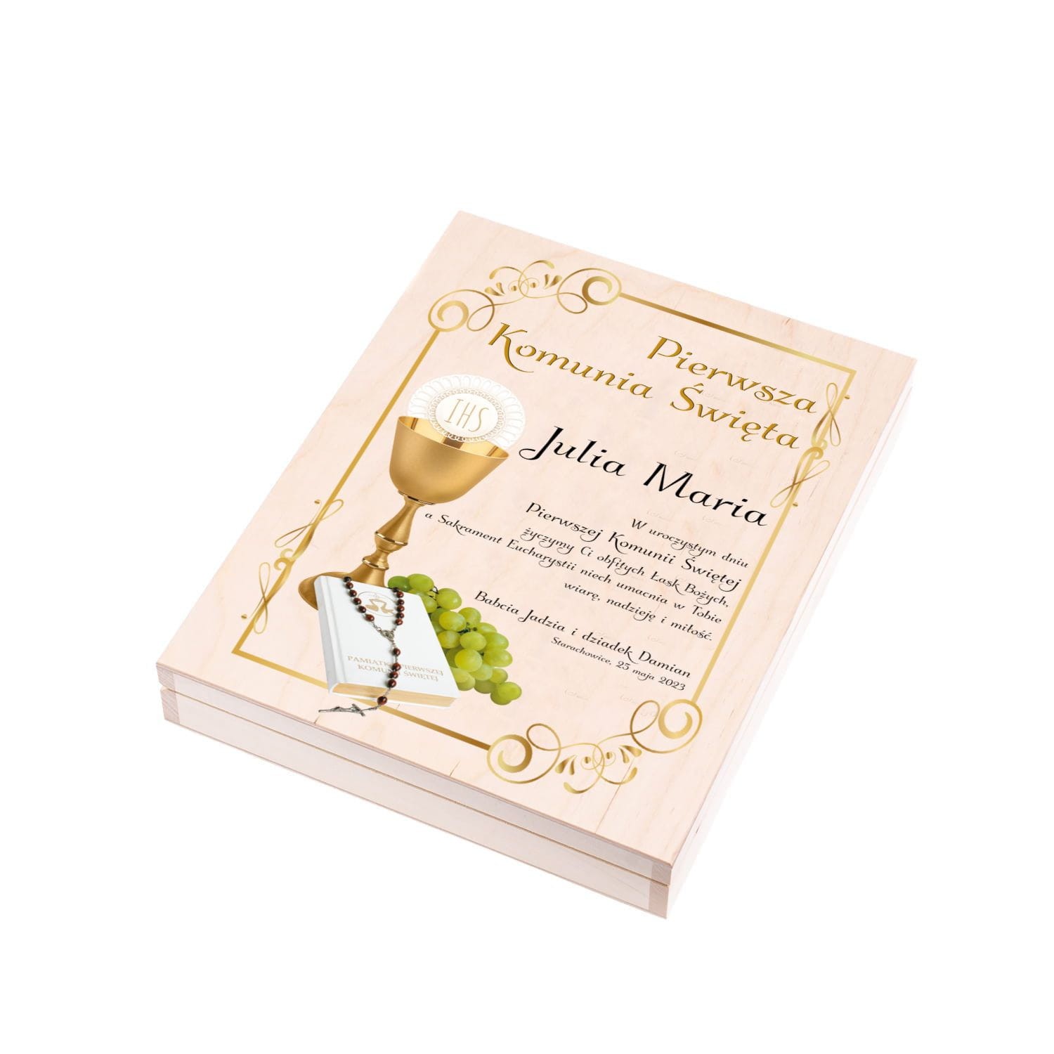 Personalizowane drewniane pudełko – idealne na prezent z okazji Chrztu Świętego, Pierwszej Komunii czy Bierzmowania
