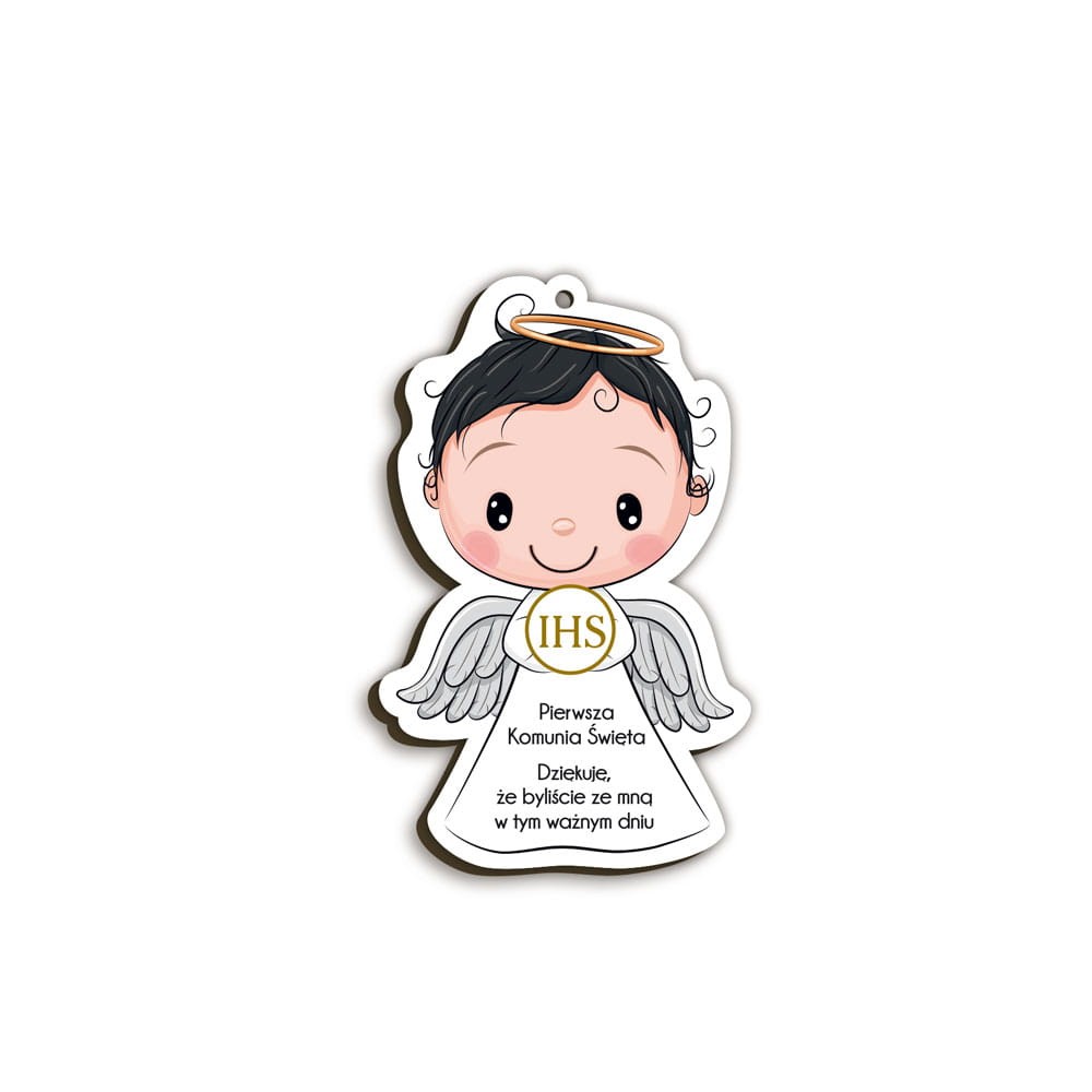 Drewniany magnes z wyjątkową grafiką to idealna forma podziękowania dla gości. Mały gadżet o niezwykłej wartości sentymentalnej sprawi, że każdy z zaproszonych gości poczuje się doceniony a wyjątkowa uroczystość Pierwszej Komunii Świętej zostanie odpowiednio zaakcentowana. Wyrazista grafika oraz możliwość wyboru spośród kilku dostępnych wzorów sprawia, że każdy znajdzie magnes idealnie dostosowany do uroczystości. Magnes przypominający kształtem aniołka - chłopczyka.
