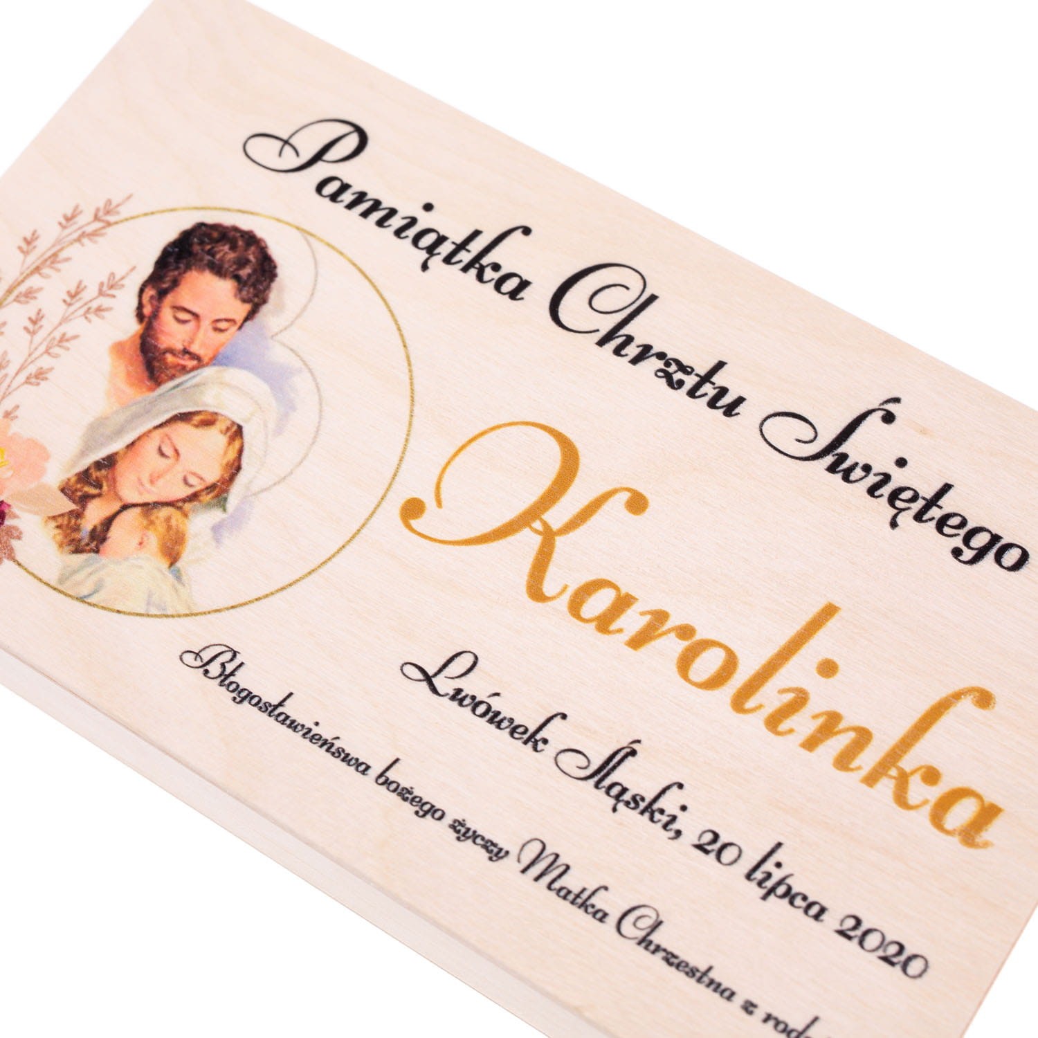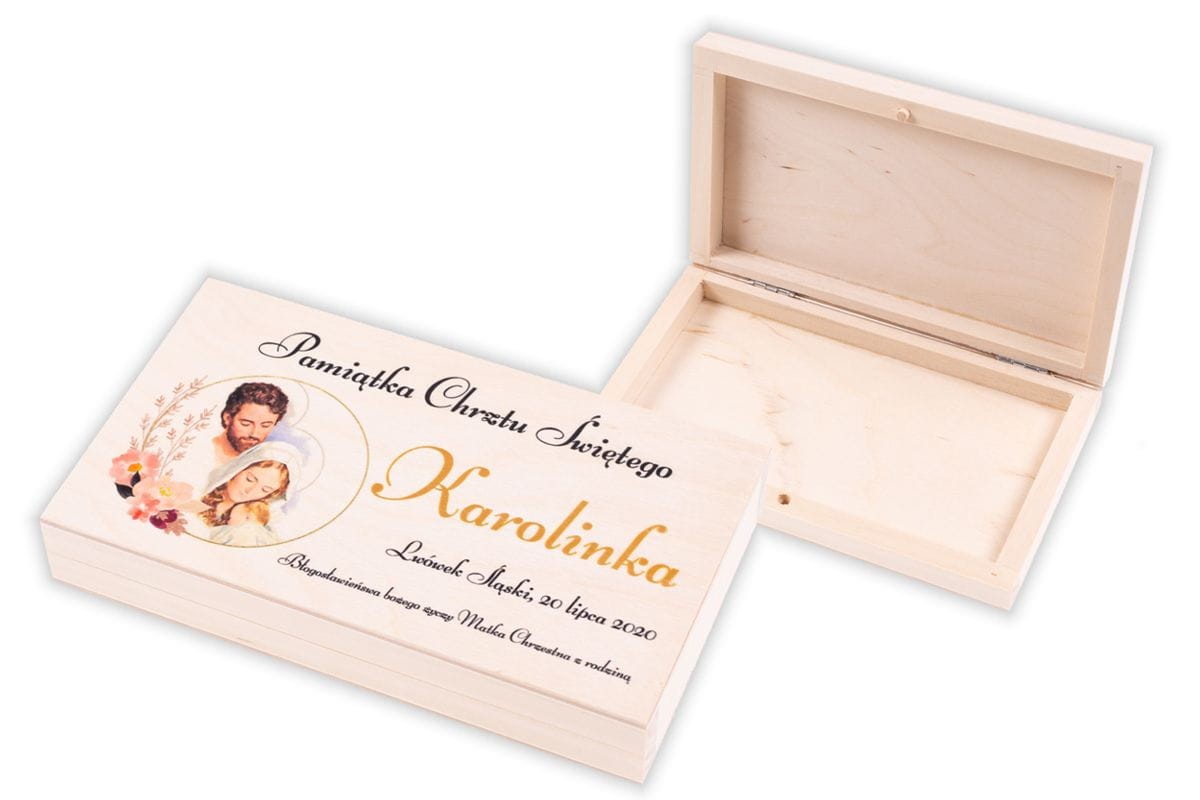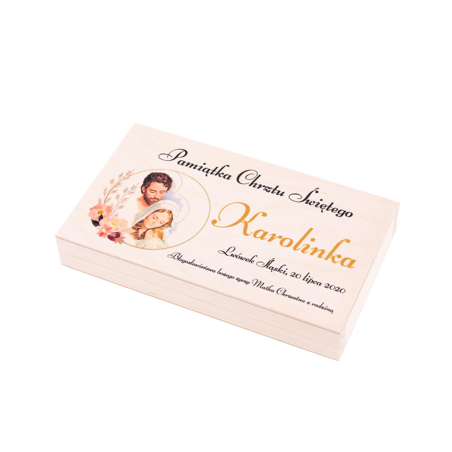 Pudełeczko drewniane EKO ♻ z nadrukiem UV - Pamiątka Chrztu Świętego