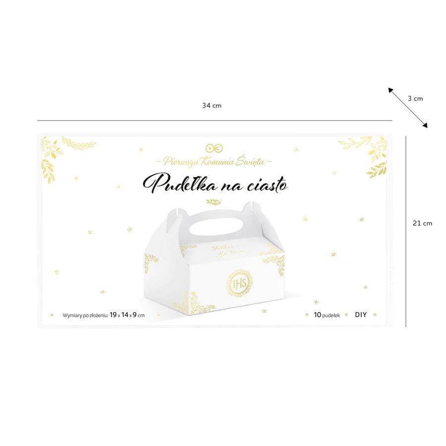 Pudełka na ciasto Komunia Święta - 10 szt komplet IHS podziękowania