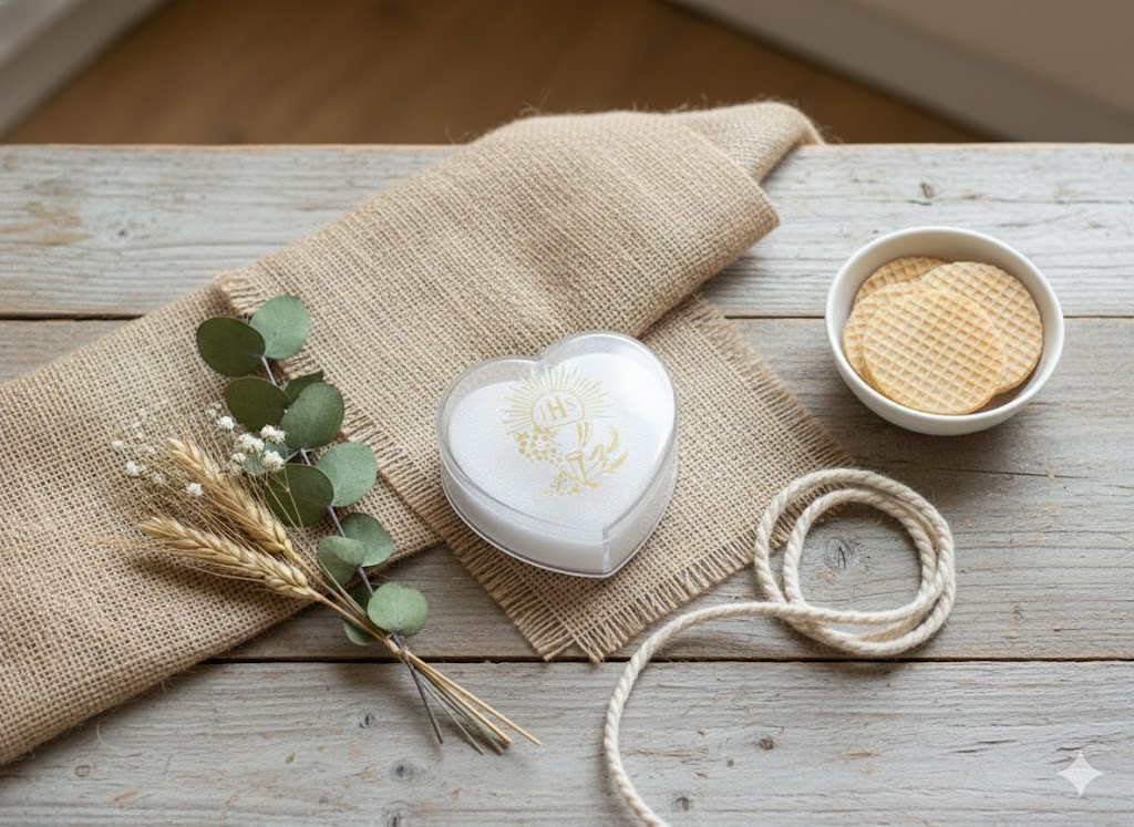 Kształt: serce – symbol miłości, wiary i ducha Komunii Świętej.