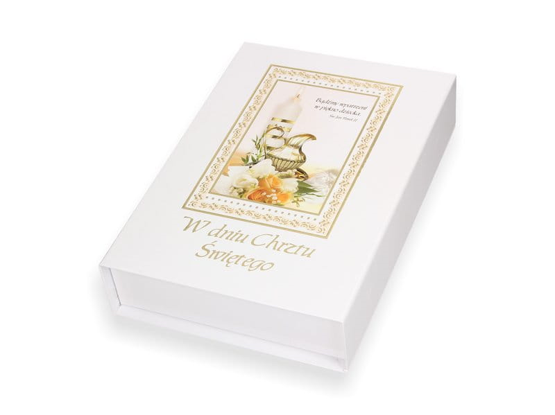 Pudełko pamiątkowe na akcesoria Chrztu Świętego A4 – etui z metryczką chrztu
