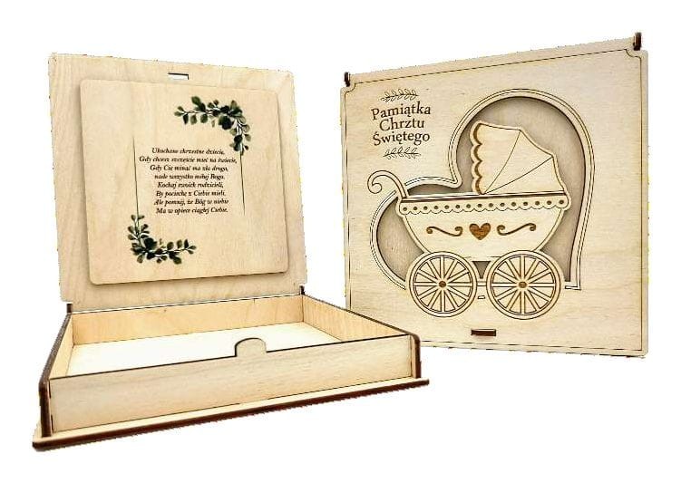 Drewniane pudełeczko na drobiazgi z grawerowanym motywem WÓZEK