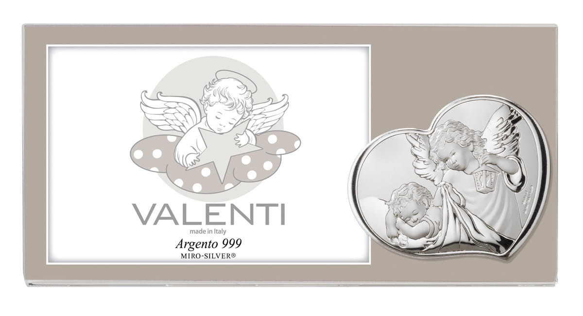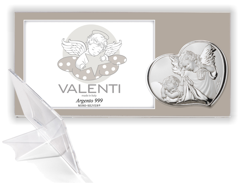 Ramka plexy z srebrnym wizerunkiem Anioła Stróża (laminowany srebrem - próba 999). Wyrób włoski w najnowszej technologii MIRO SILVER®