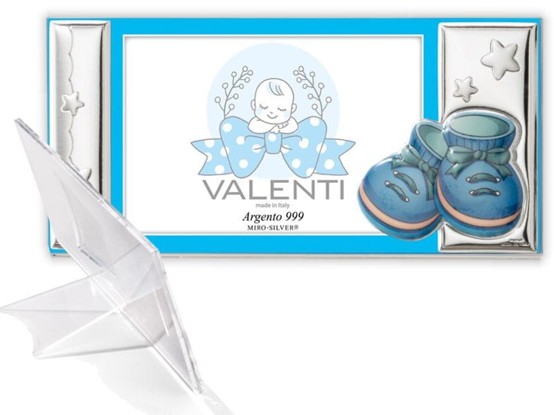 Ramka plexy z srebrnym elementami (laminowane srebrem - próba 999,95) i wizerunkiem bucików. Wyrób Włoski wykonany w najnowszej technologii MIRO SILVER®.