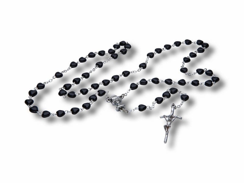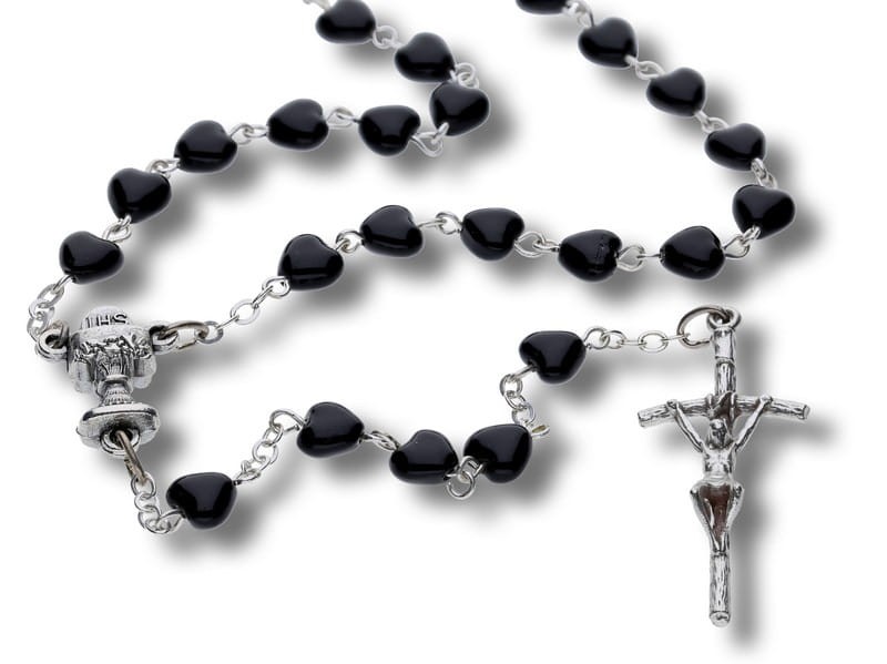 Różaniec IHS - czarne serduszka, Komunia, 6mm