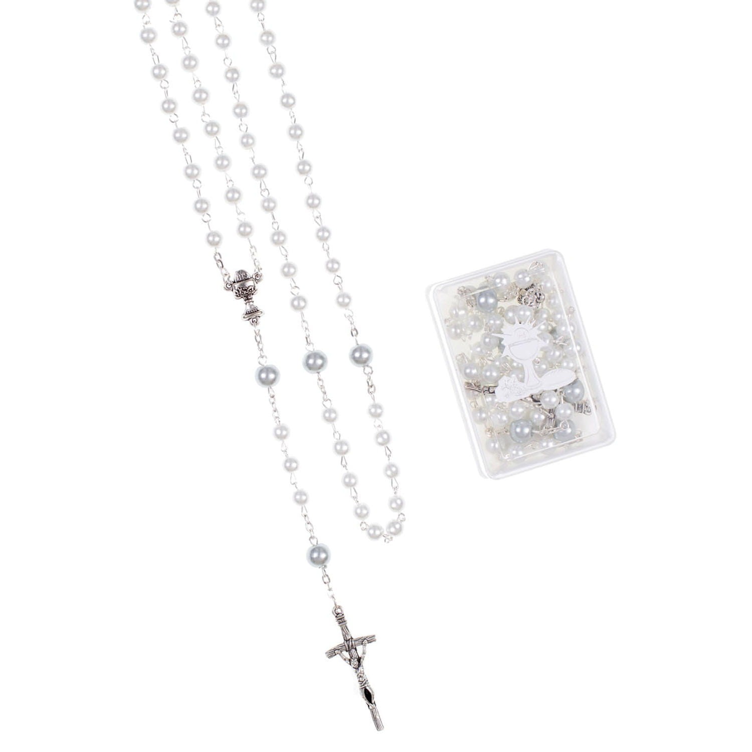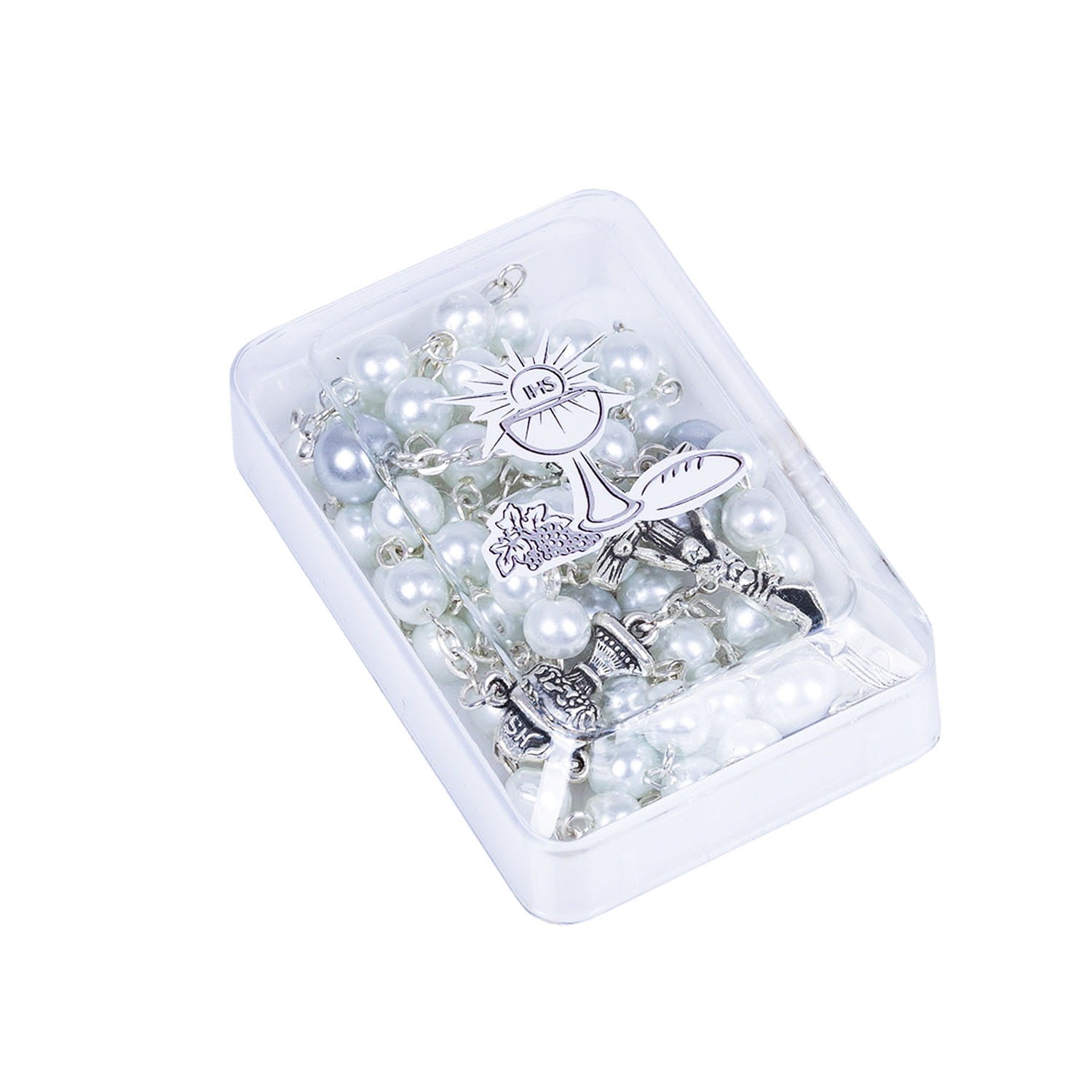 Różaniec - Pierwsza Komunia Święta - 6 mm - szkło - perłowa powłoka - pudełko