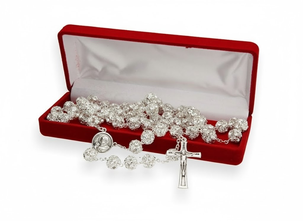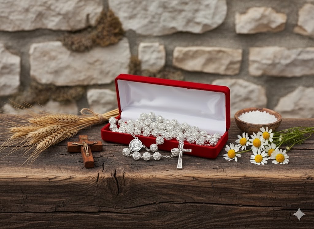 Różaniec ten doskonale sprawdzi się jako pamiątka I Komunii Świętej, Bierzmowania, ślubu lub jubileuszu wiary. Może być również eleganckim prezentem dla bliskiej osoby – symbolem modlitwy, opieki i błogosławieństwa.